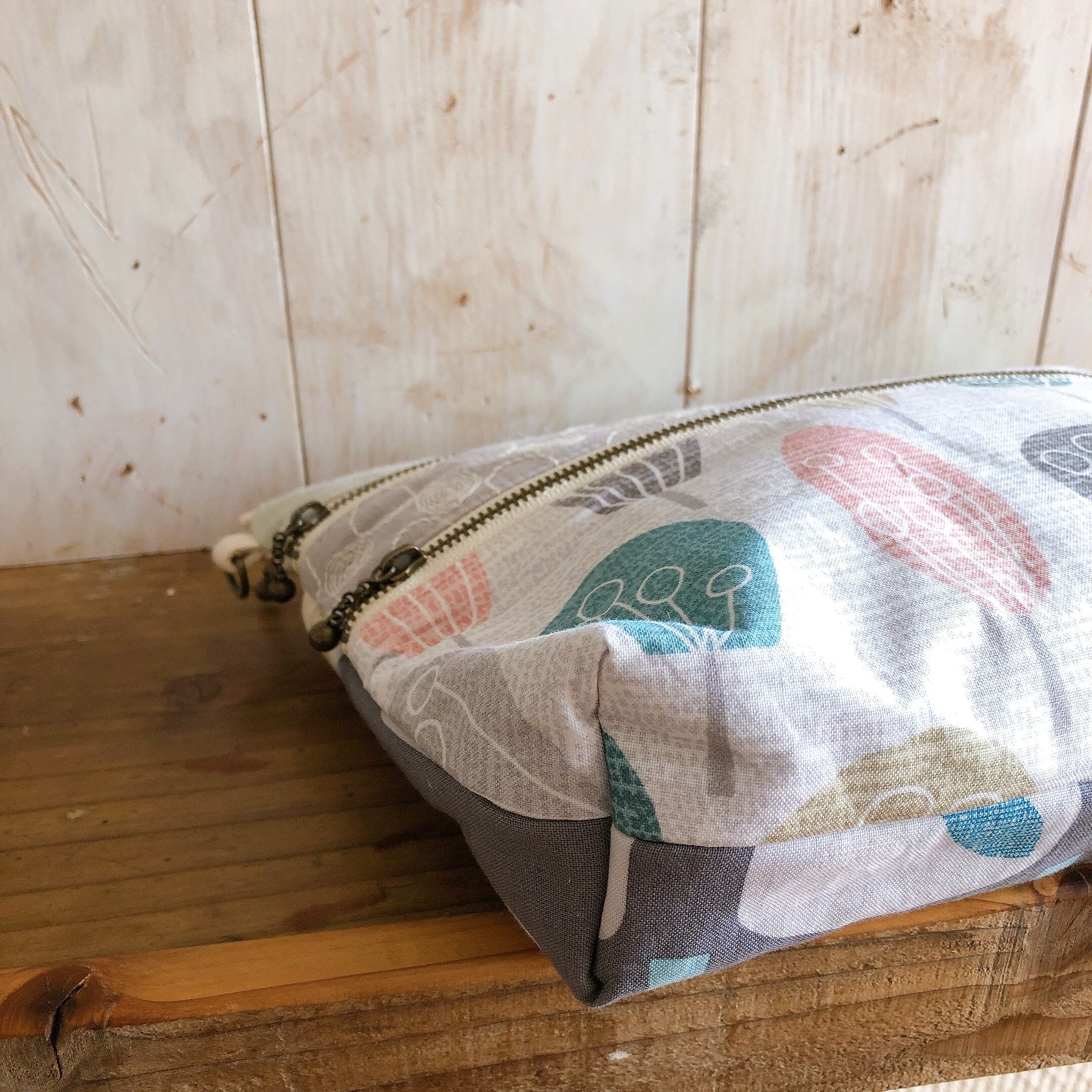 マチ付き3ファスナーポーチ*ポシェットにも♪(ツリー×バード)