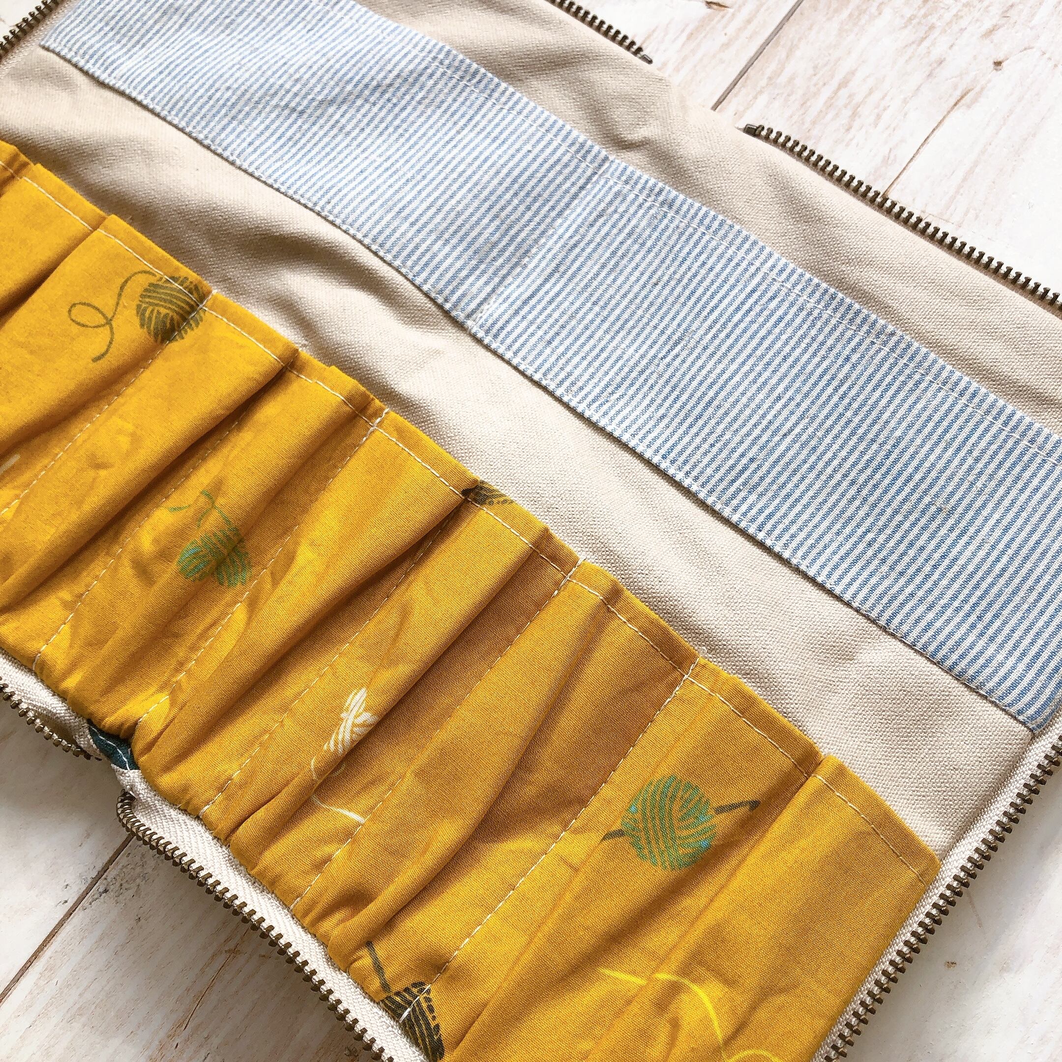 ぐるりとファスナーのかぎ針ケース(オレンジバート×カラシ)ペンケースにも♪