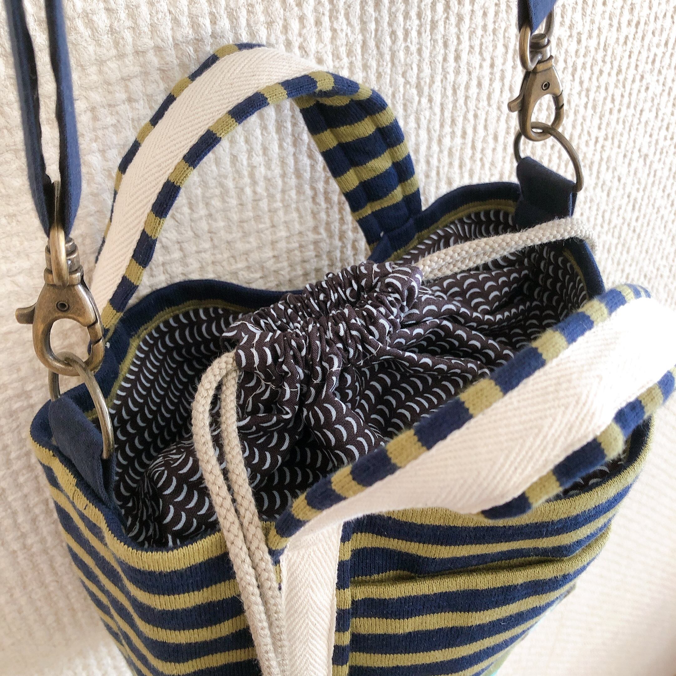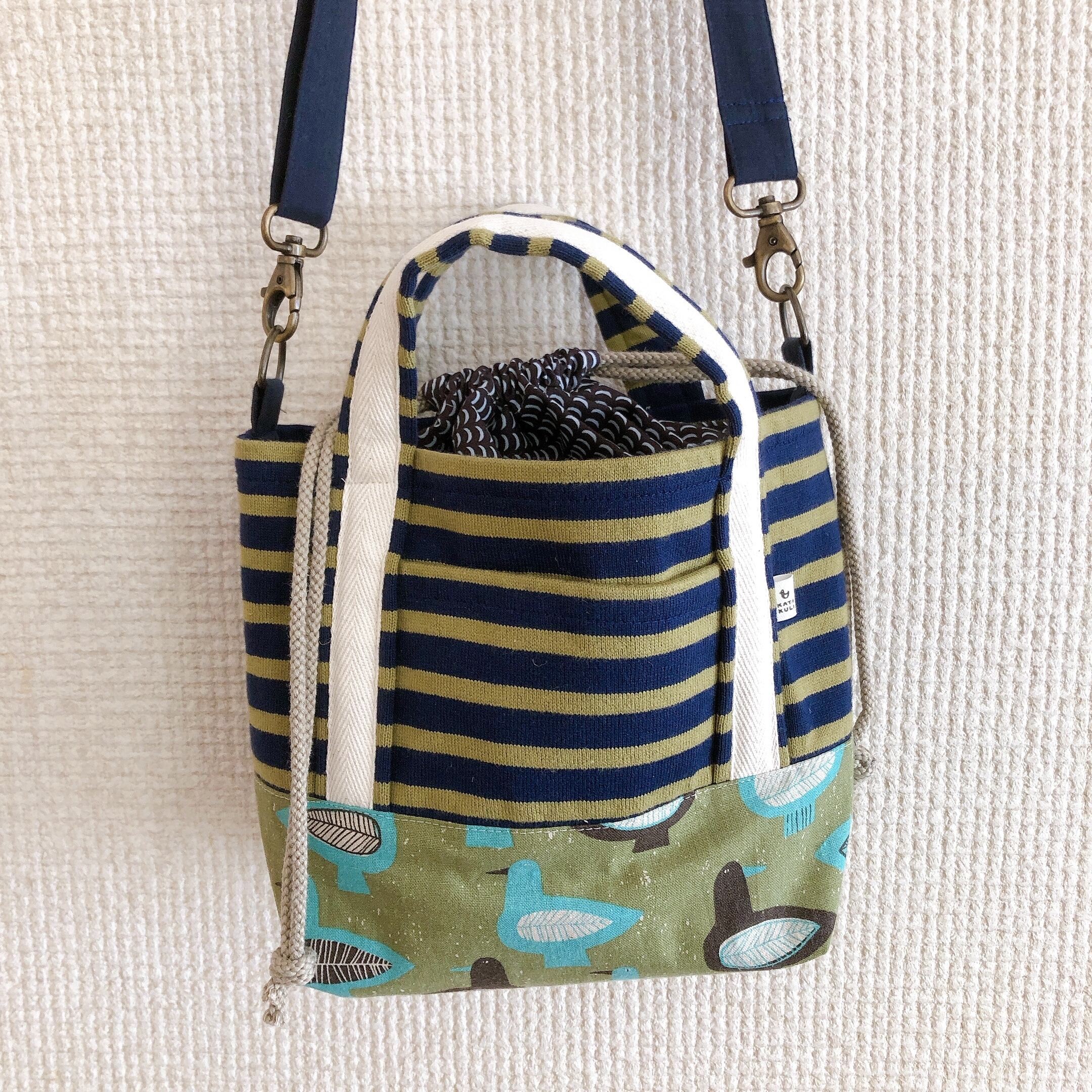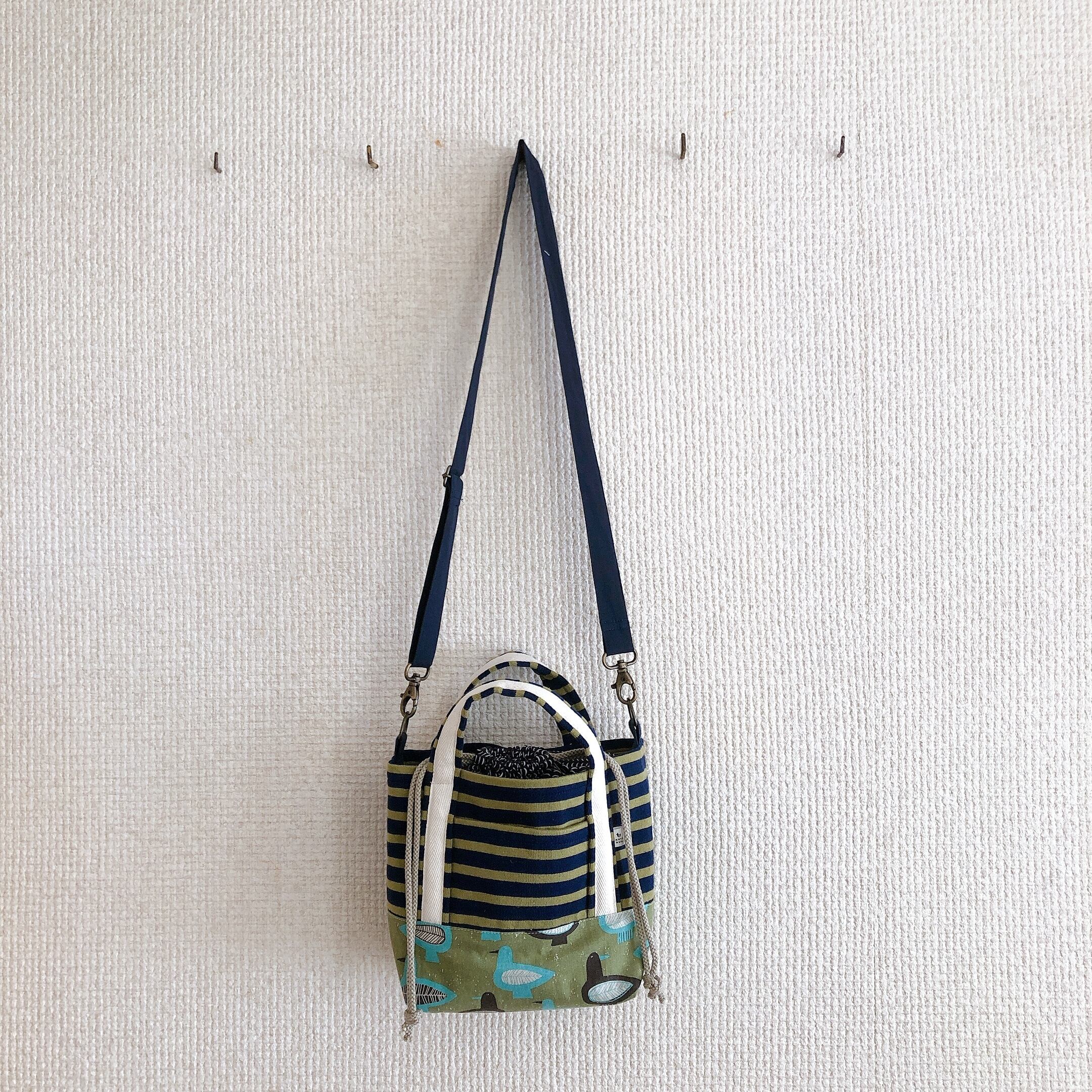 2way*巾着付き★ミニトートバック(ボーダー×バード)