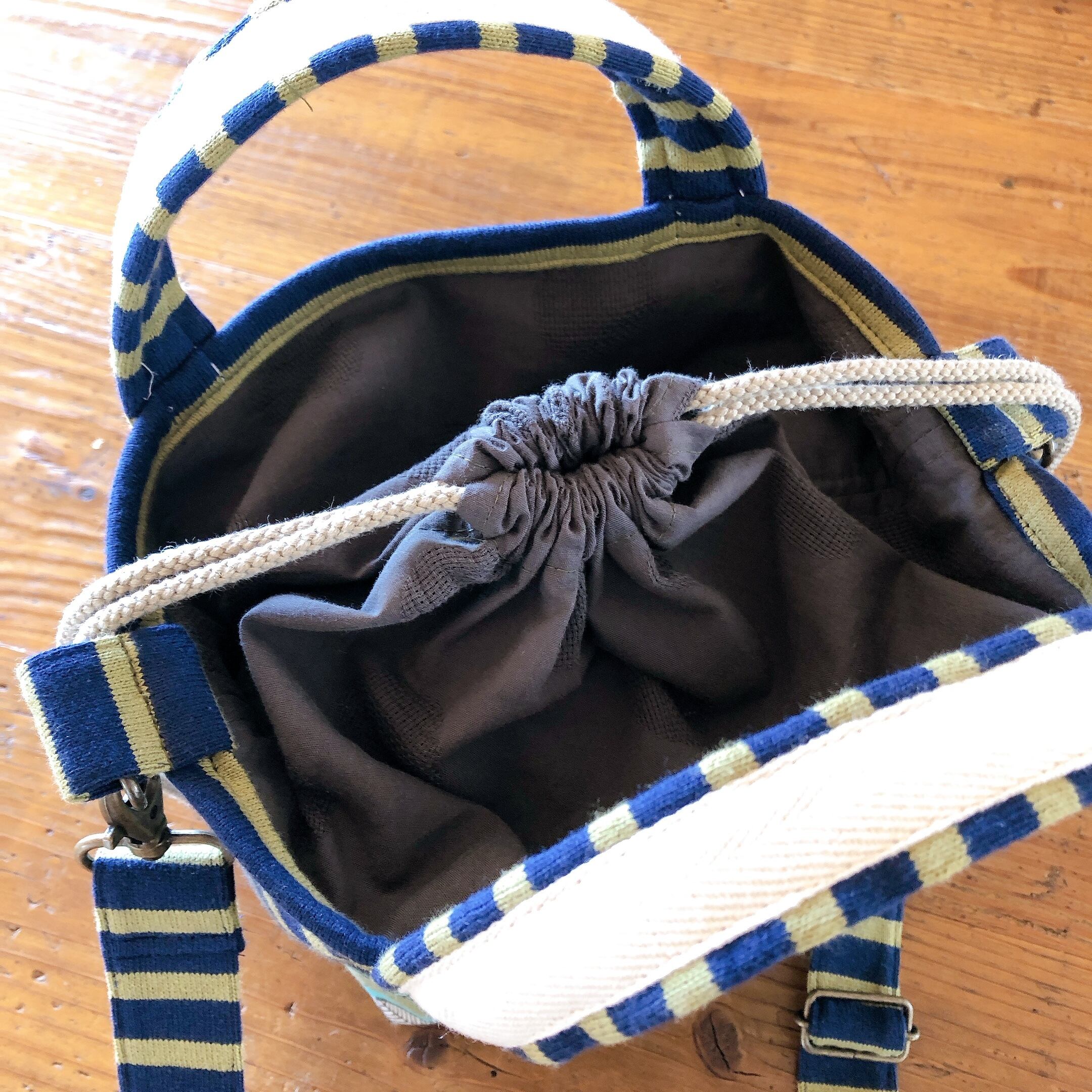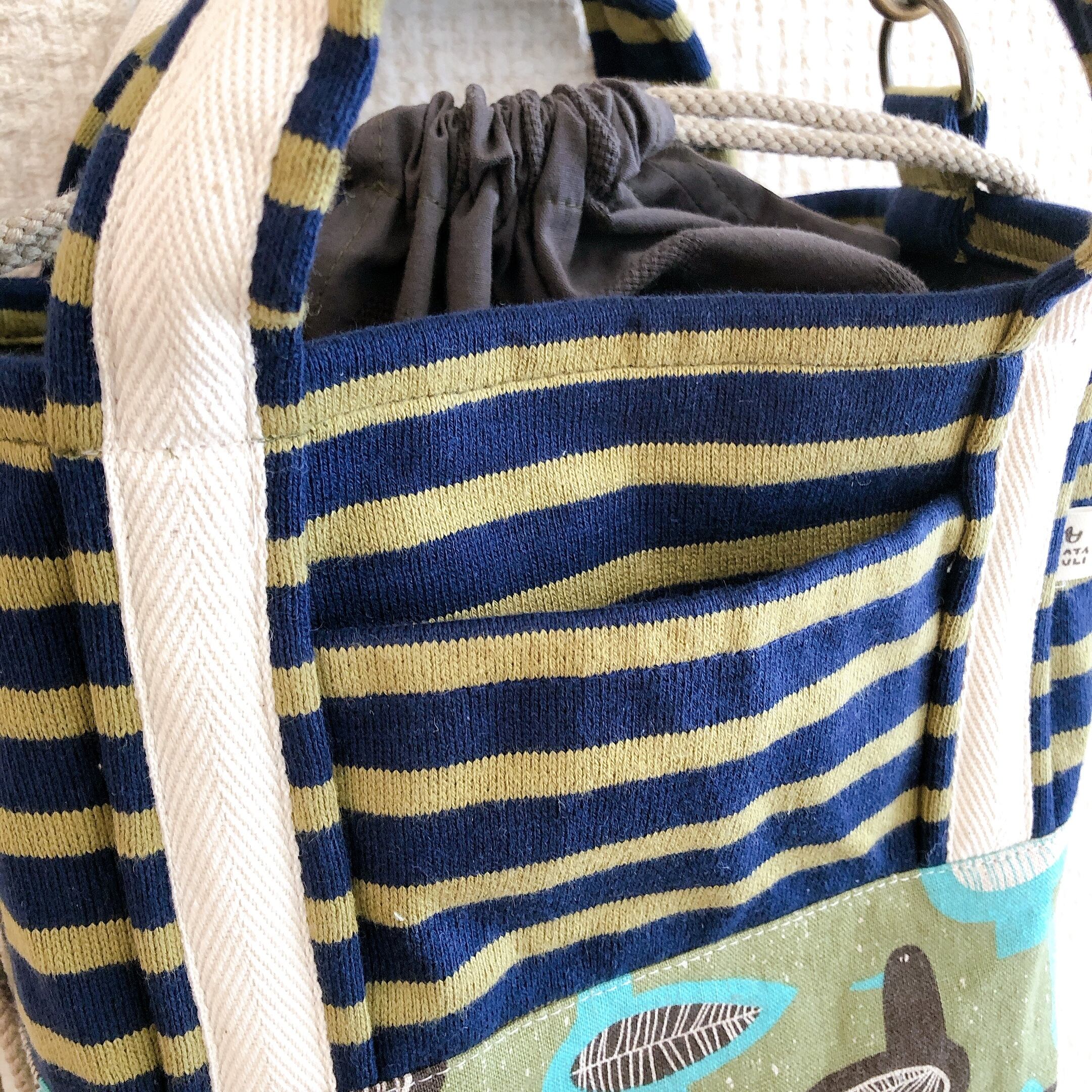 2way*巾着付き★ミニトートバック(ボーダー×バード)