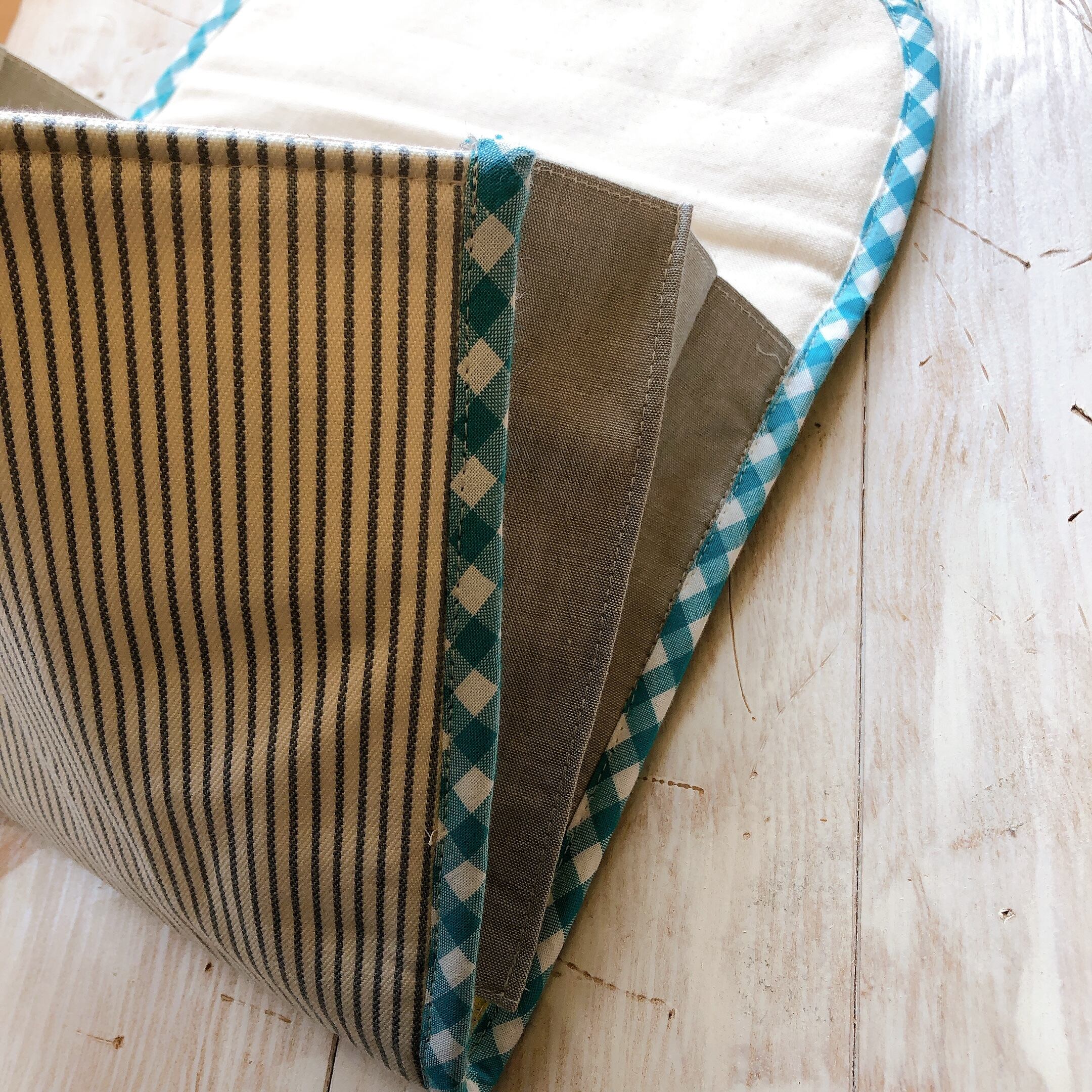 北欧風の布を使ってふんわりワタ入りのマルチケースを作りました。
