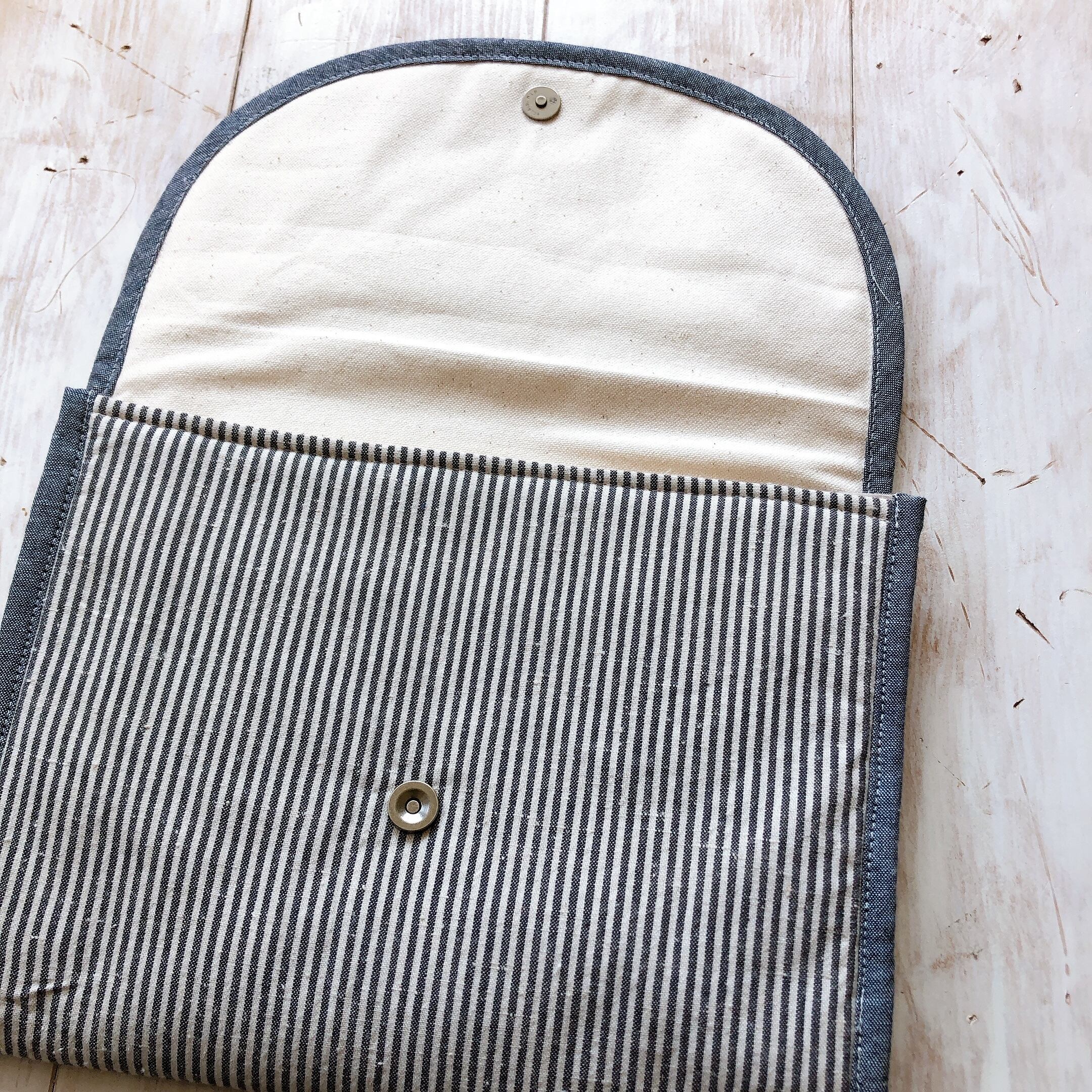 北欧風の布を使ってふんわりワタ入りのマルチケースを作りました。
