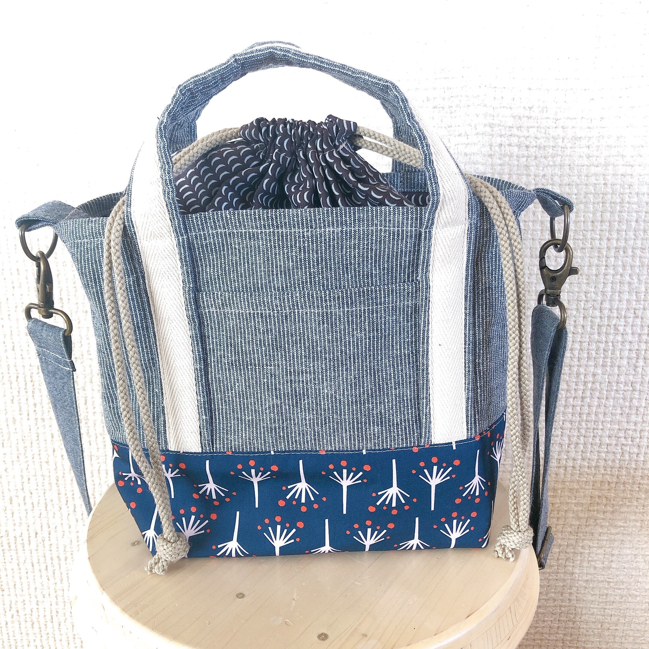お弁当を入れたり、ちょっとそこまでの買物やお散歩にぴったりなトートバックです。