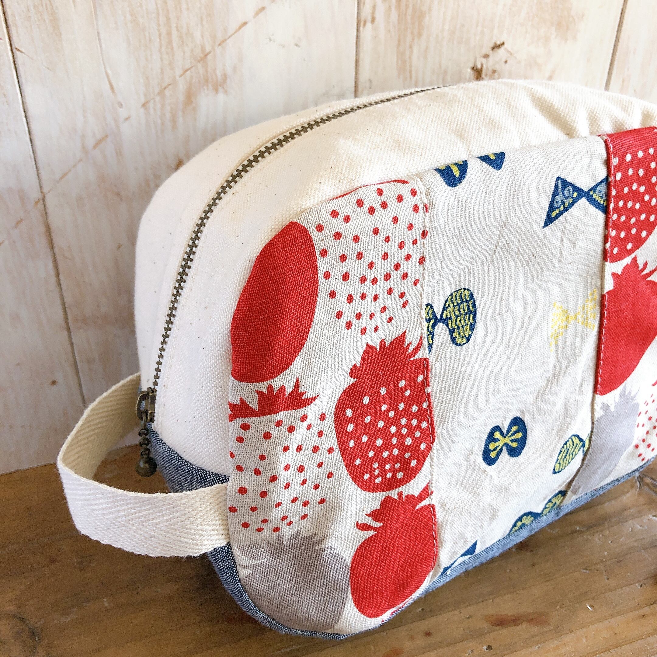 マチが広くて、使いやすい大きさのポーチ作りました。