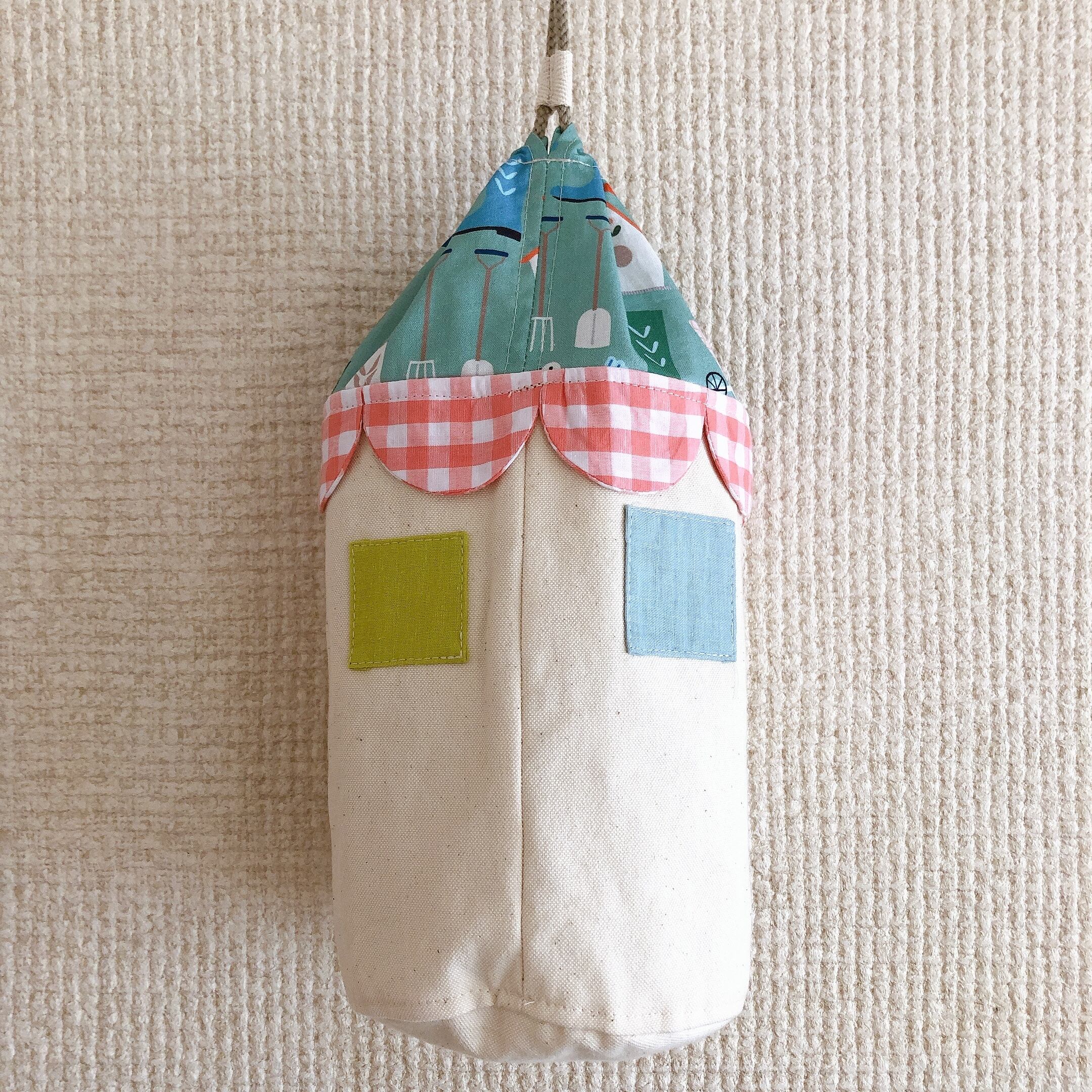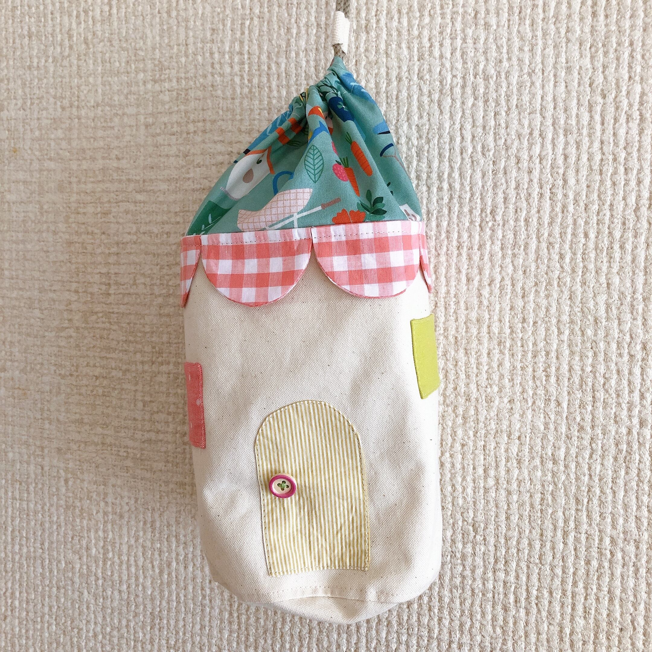 屋根の入り口は巾着で開け閉め。ストッパーできゅっと締めるだけなので楽ちんです。