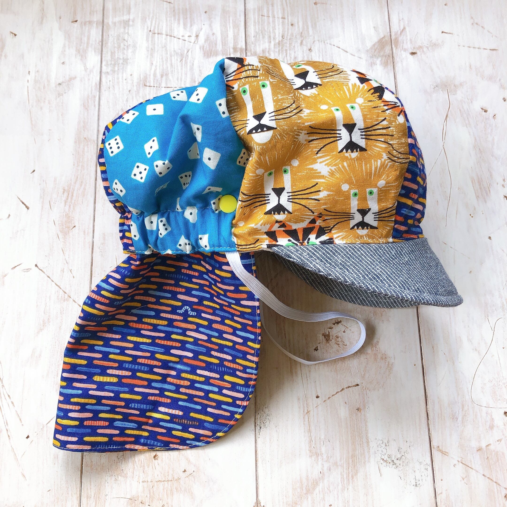 たれ付きキャスケットsize50〜(ライオンと虫さん)