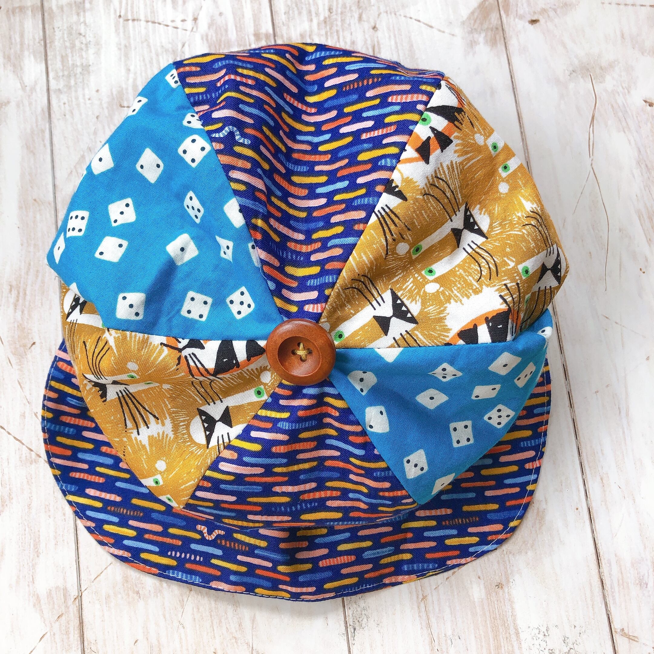 相性の良い3種類の生地を組み合わせて賑やかなキャスケットにしてみました。
