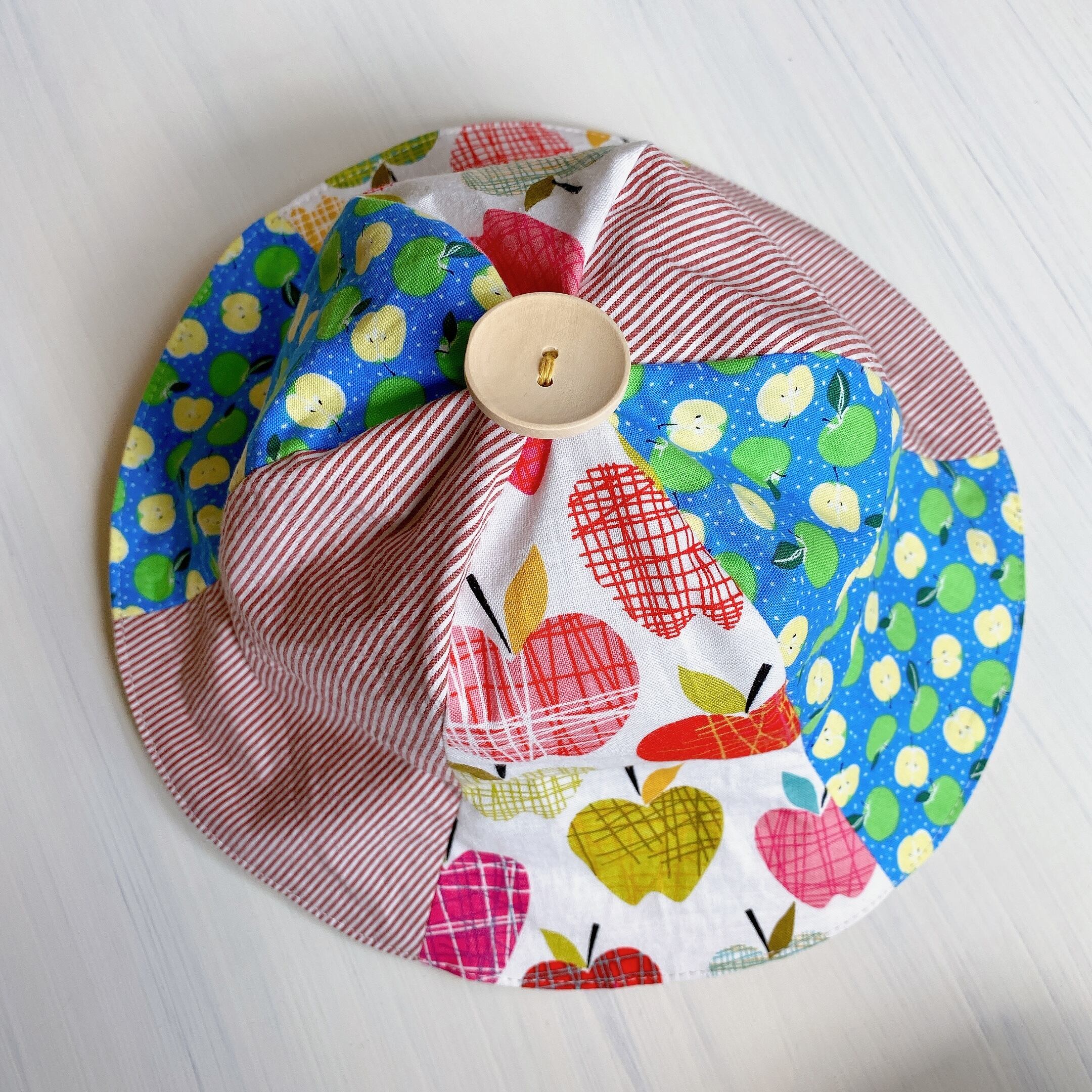相性の良い3色の生地を組み合わせてチューリップハットにしました。