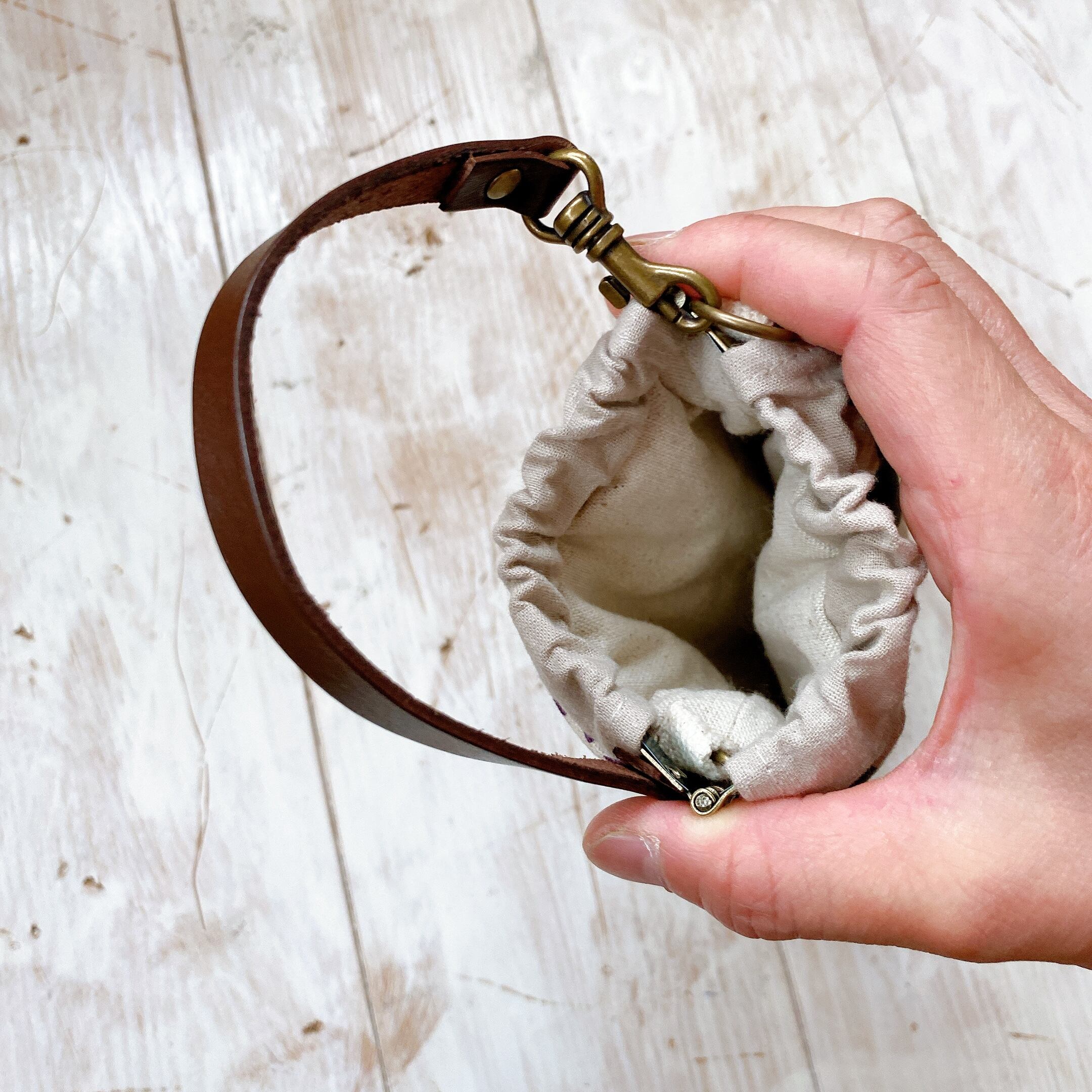 持ち手は使い込むほどなじむ牛革で、片方のみ取り外しできますので何かに引っ掛けて使うことができます。
