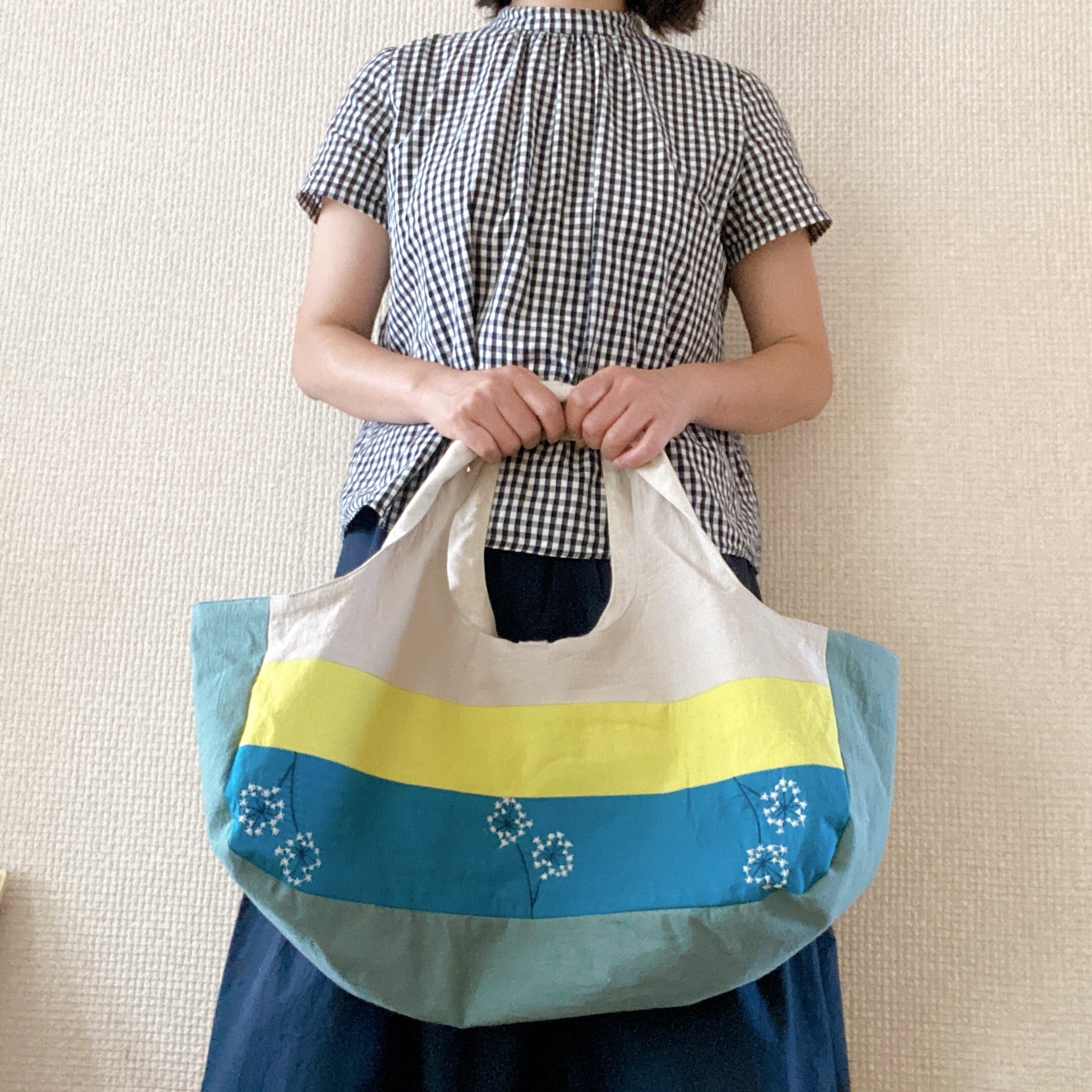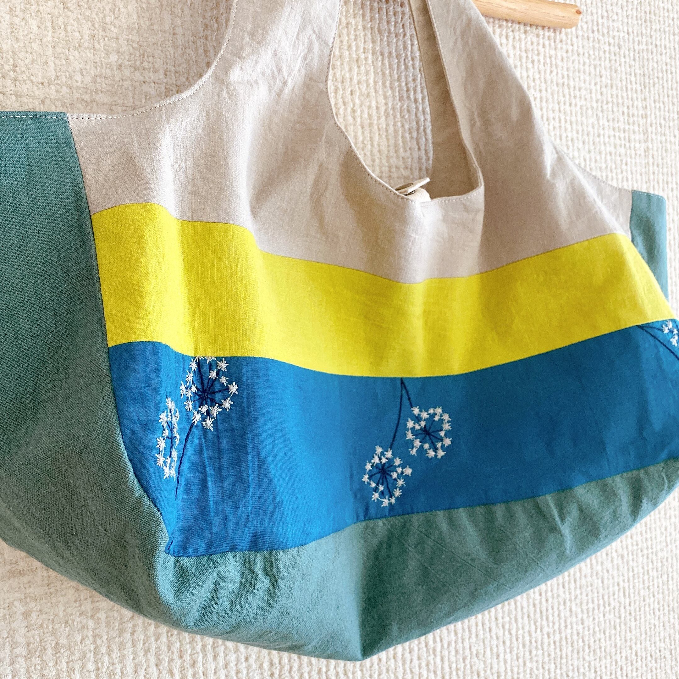 相性の良い生地を組み合わせて、カラフルなボーダーに見えるように仕上げました。