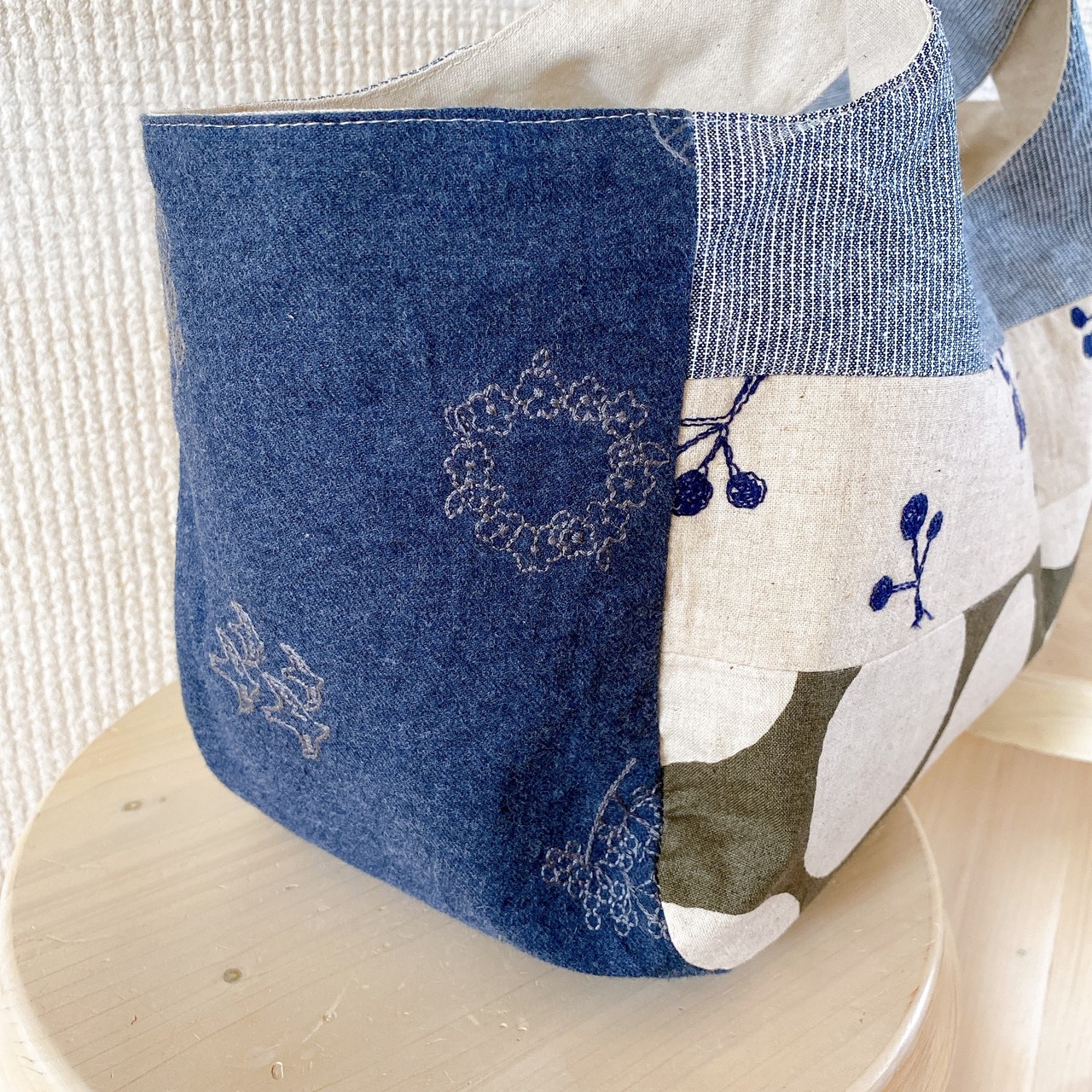 相性の良い生地を組み合わせて、カラフルなボーダーに見えるように仕上げました。