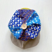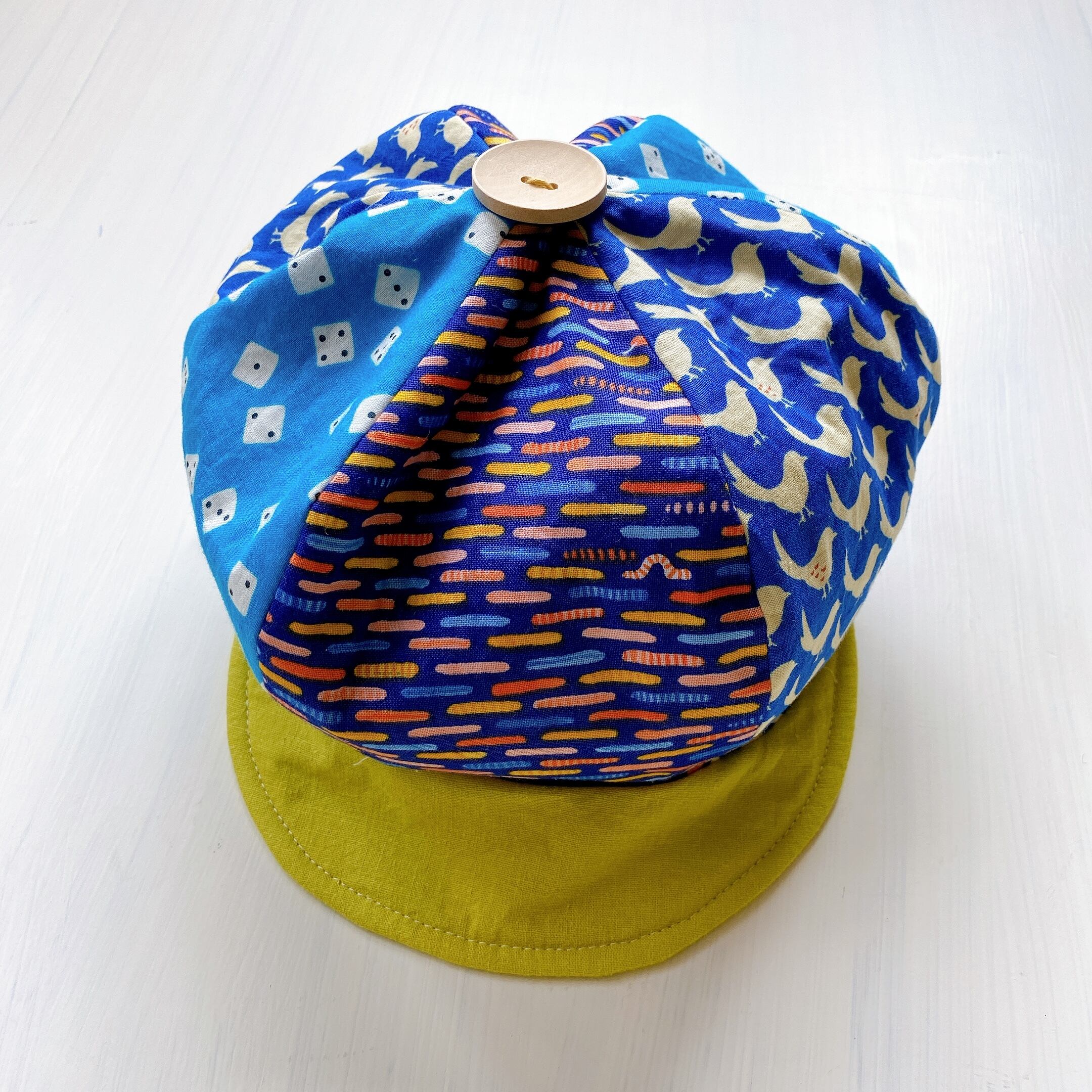 相性の良い3種類の生地を組み合わせて賑やかなキャスケットにしてみました。
