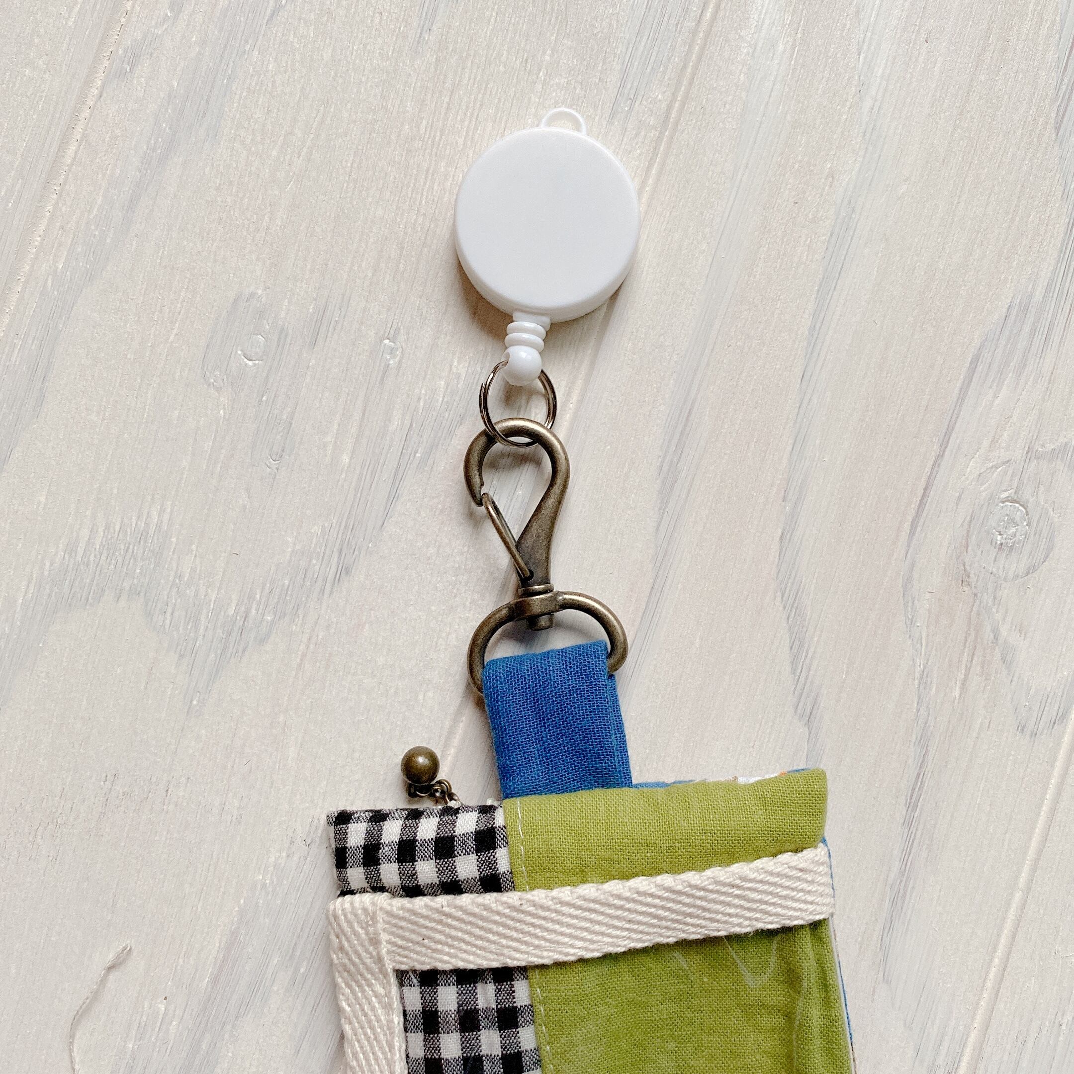 内側には、つけ外し可能なリール付きのキーホルダーをつけております。