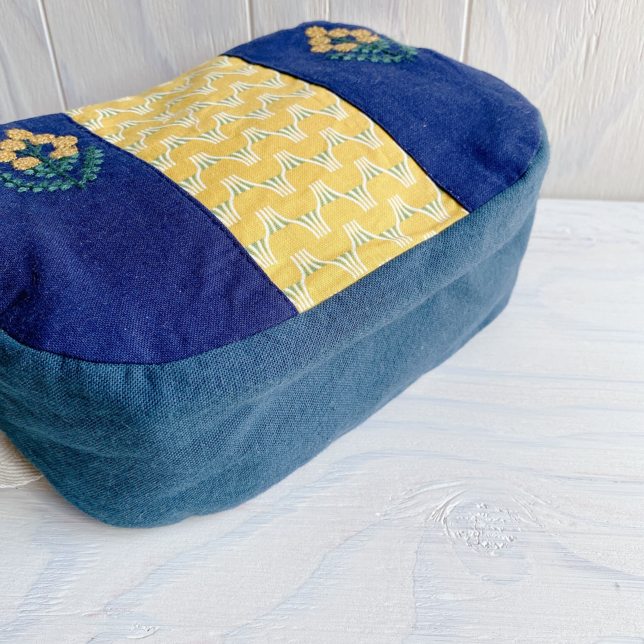 内ポケット付きポーチ(刺繍黄色いお花×刺繍あじさい)