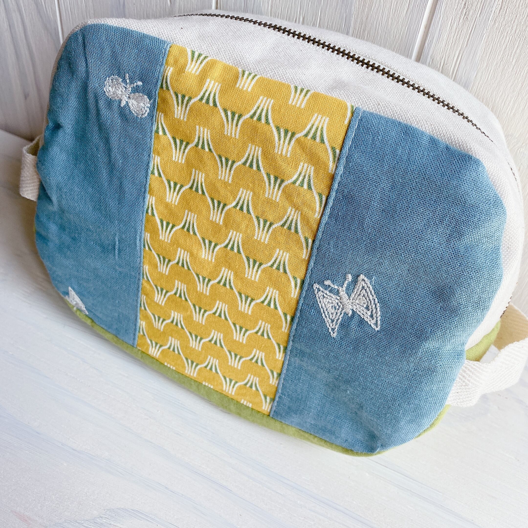 内ポケット付きポーチ(刺繍ちょうちょ×ライムチューリップ)