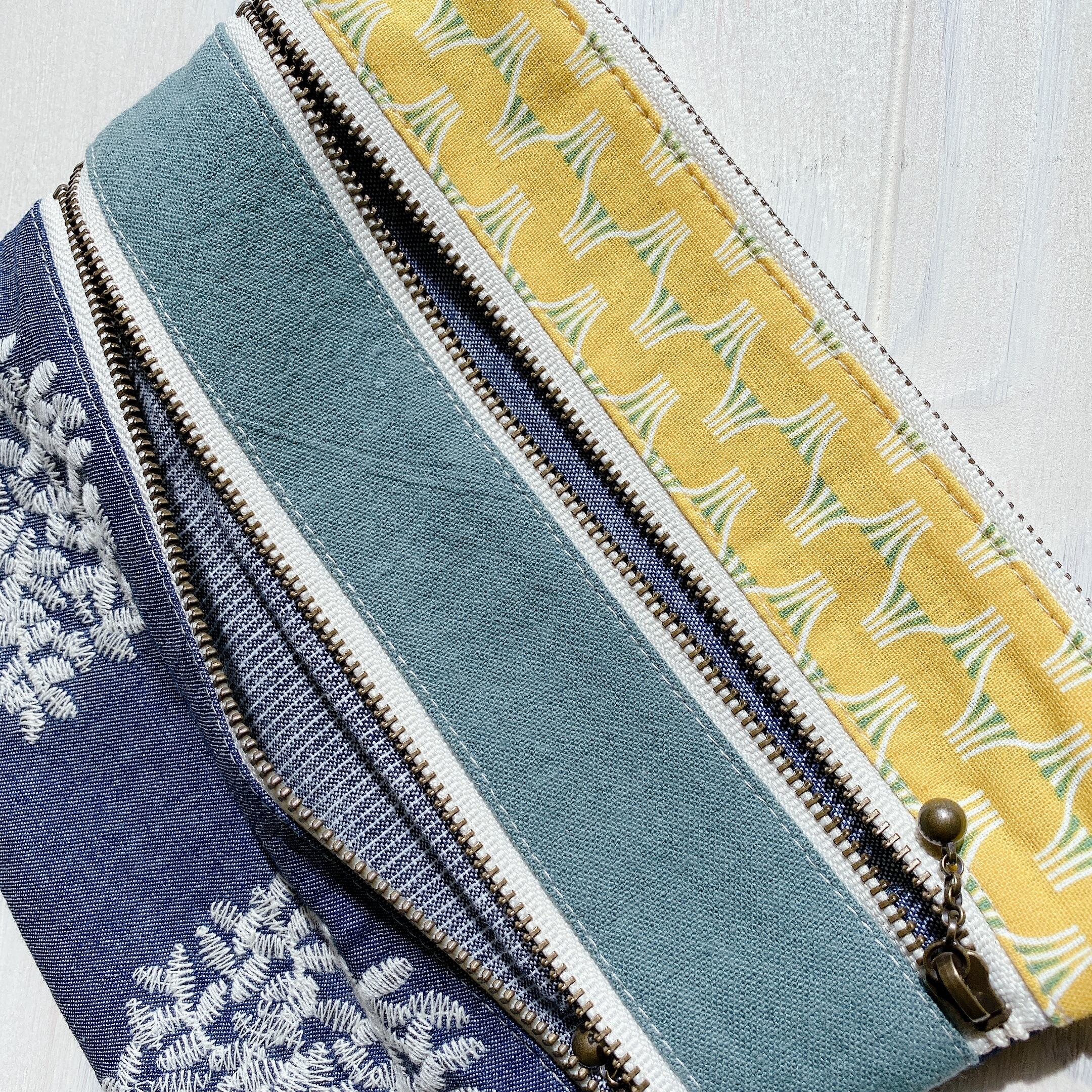 3ファスナーフラットポーチ*マスク入れにも♪ポシェットにも♪(デニムあじさい)