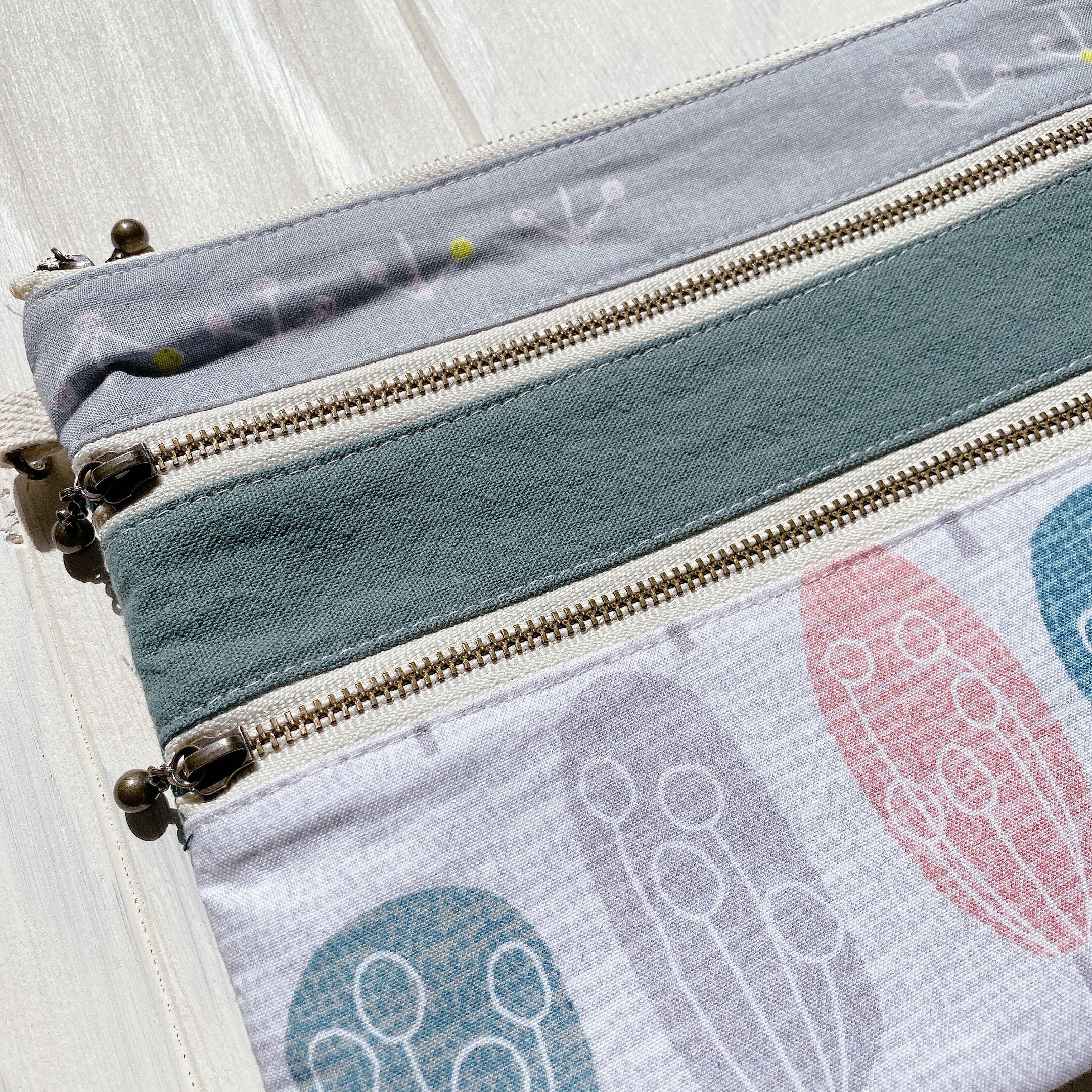 3ファスナーフラットポーチ*マスク入れにも♪ポシェットにも♪(ツリー)