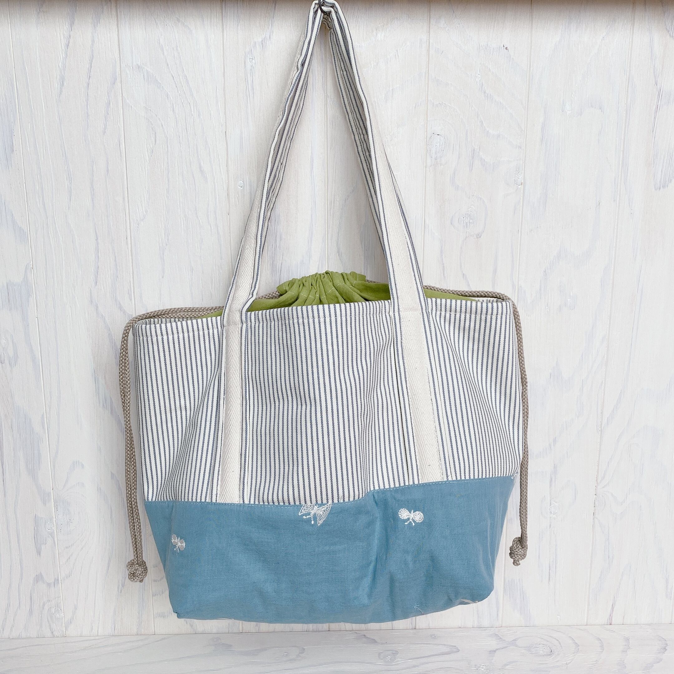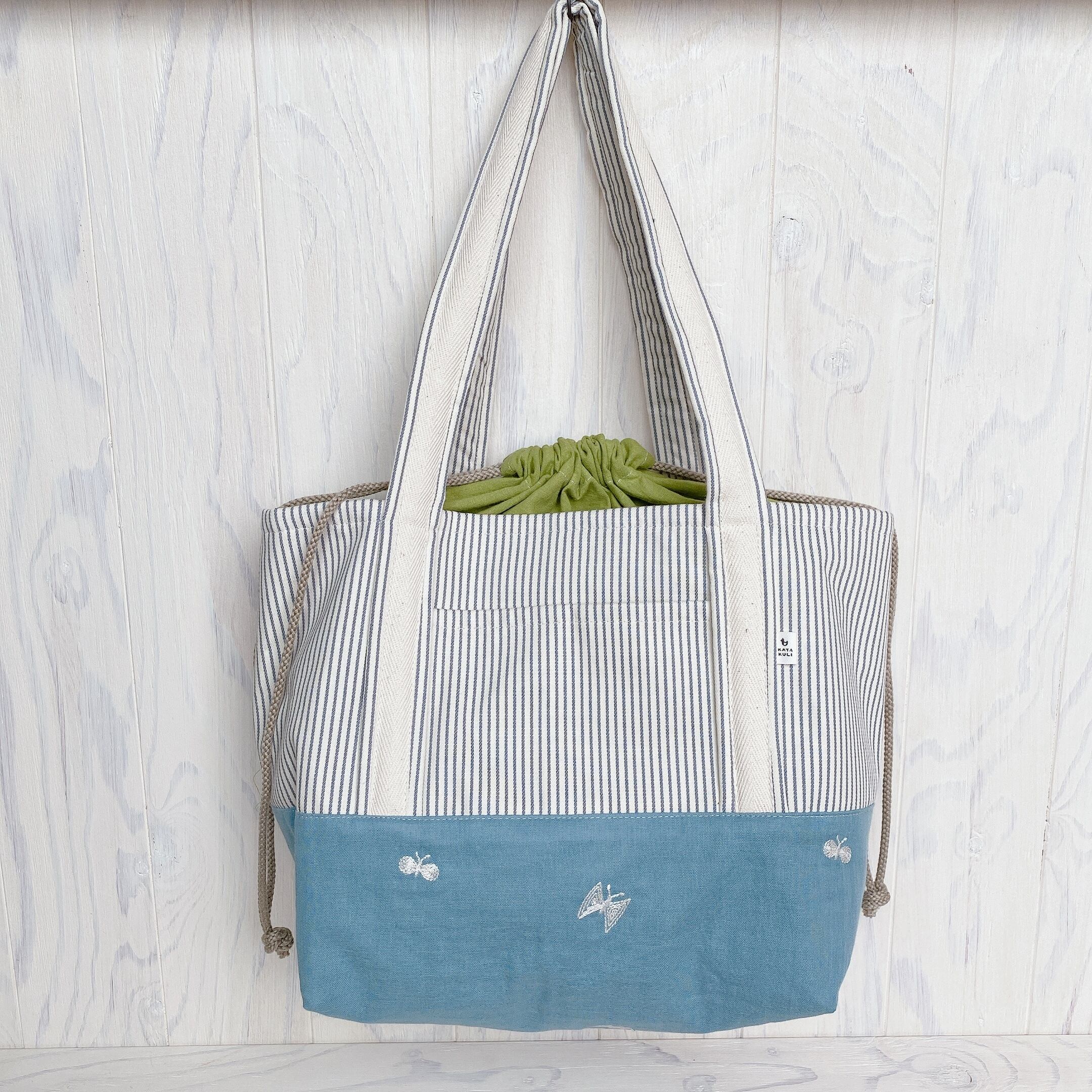 持ち手長めな巾着付きトートバック(ミズイロちょうちょ)