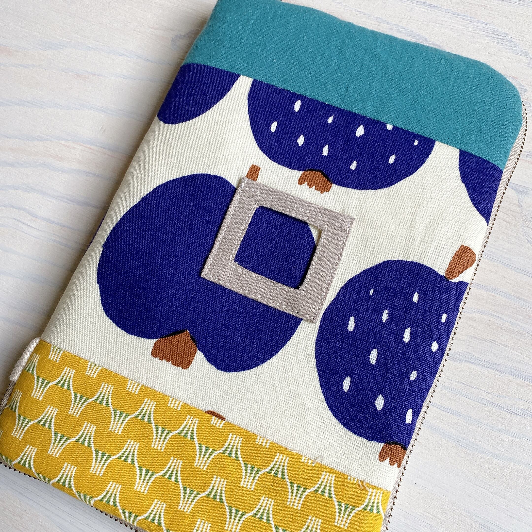 A5サイズ母子手帳ケース*写真ポケット付き*ファスナー開き*ネイビーりんご