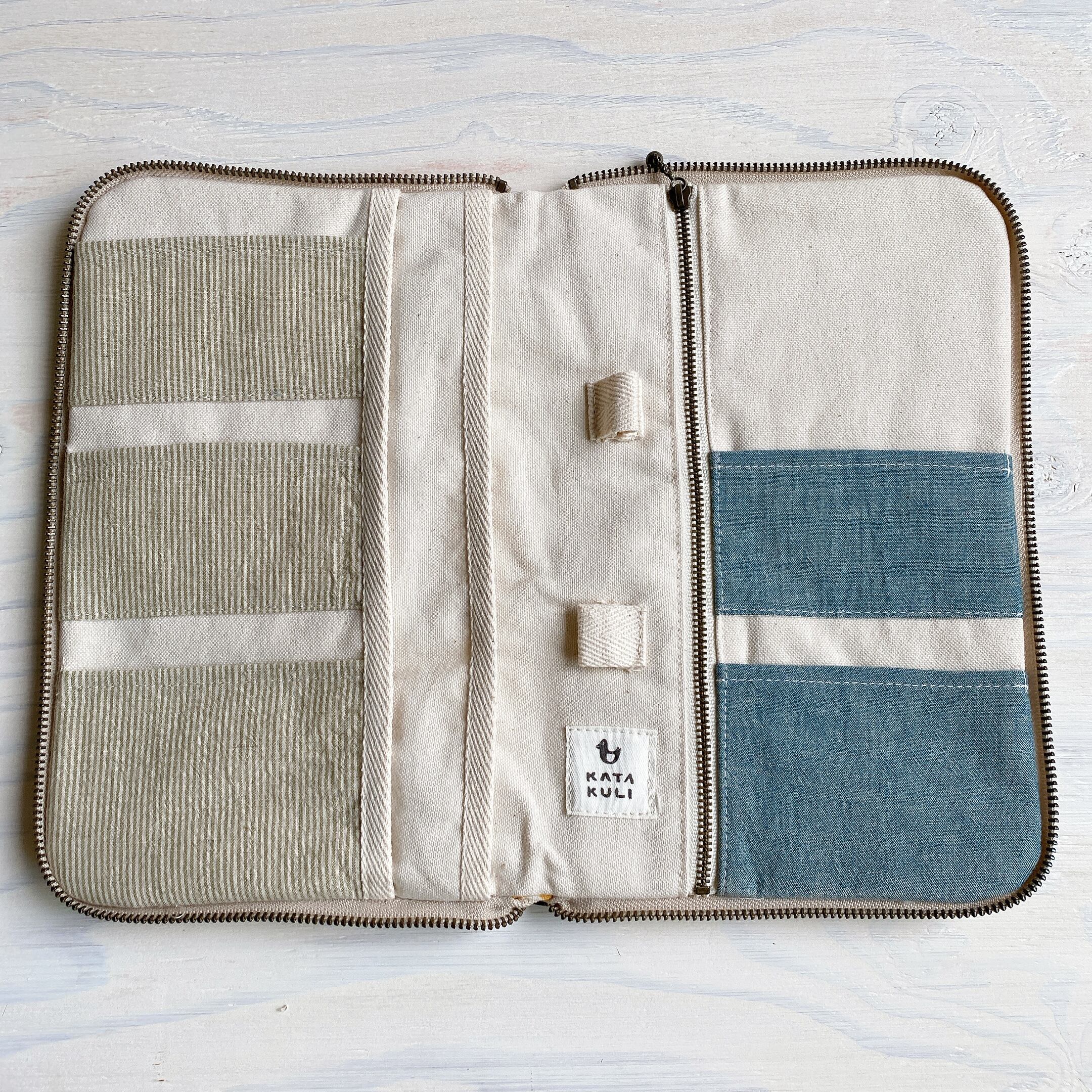 ケースがパカっと全開になるように、ファスナー止まりの部分に工夫をしています。