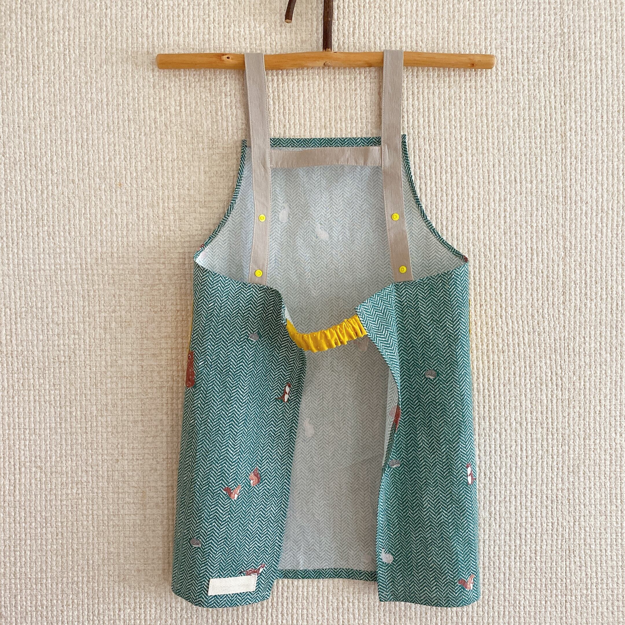 低学年サイズ♪エプロン4点セット(サイズ130)どうぶつたちグリーン