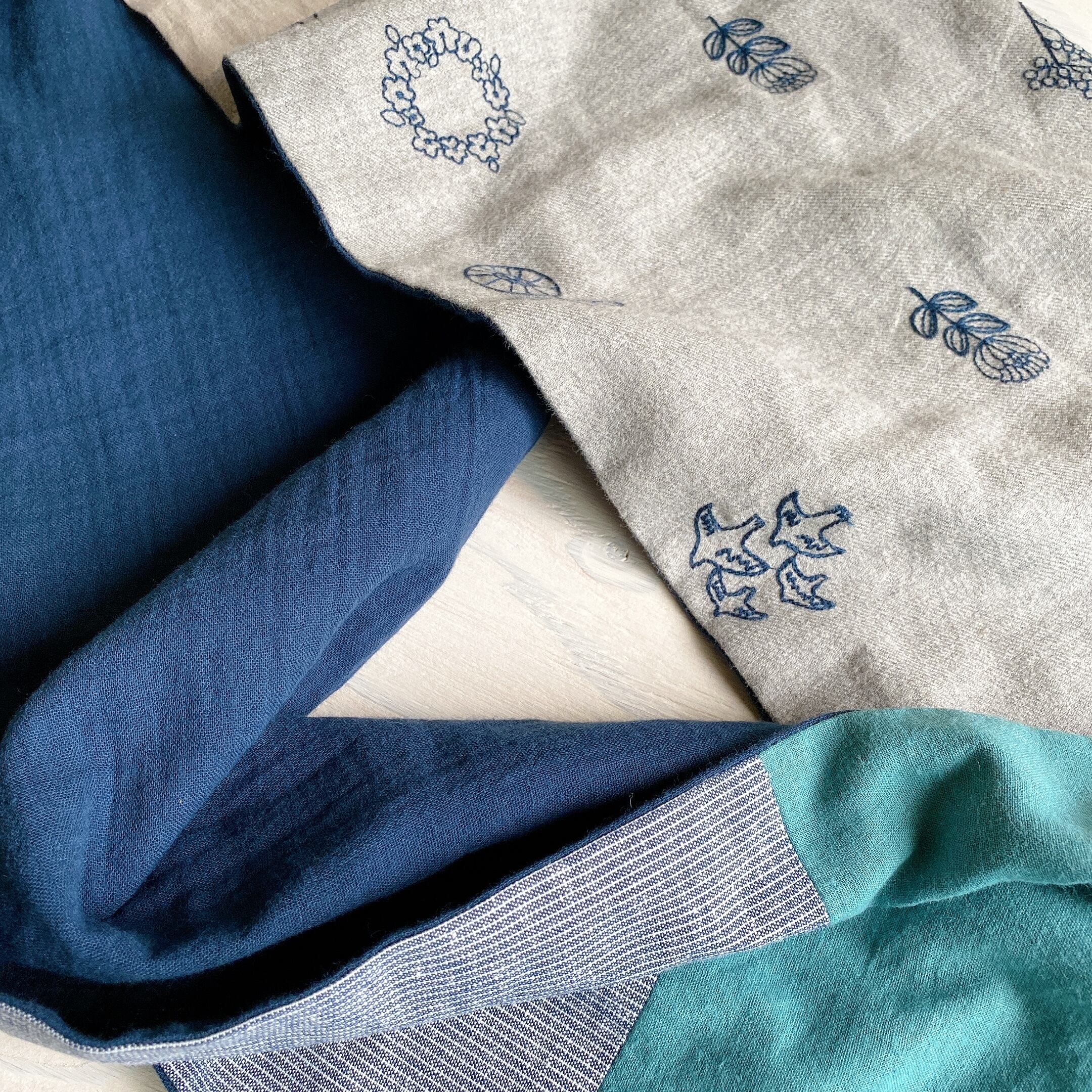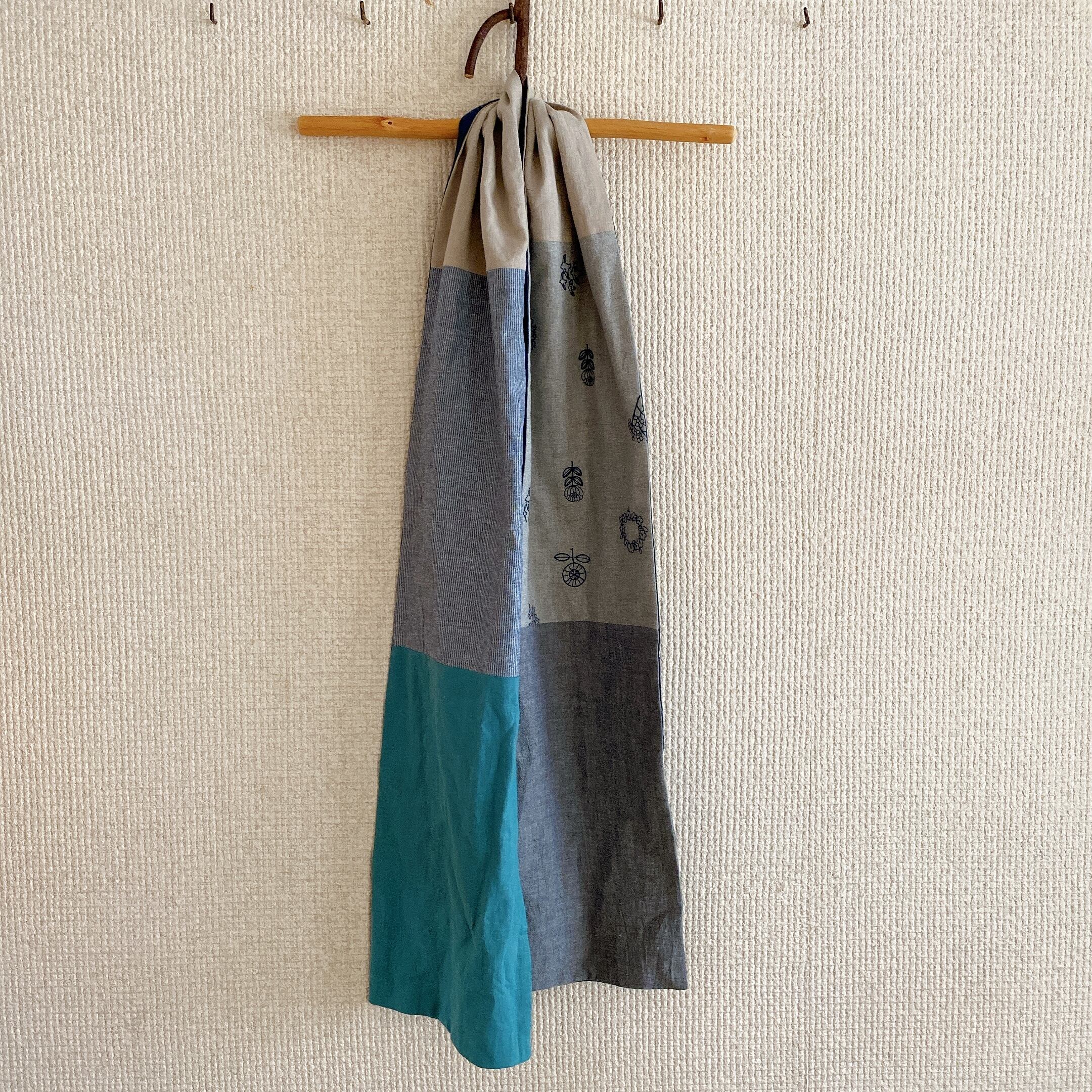 5布のmixストール(いろいろ刺繍グレー)