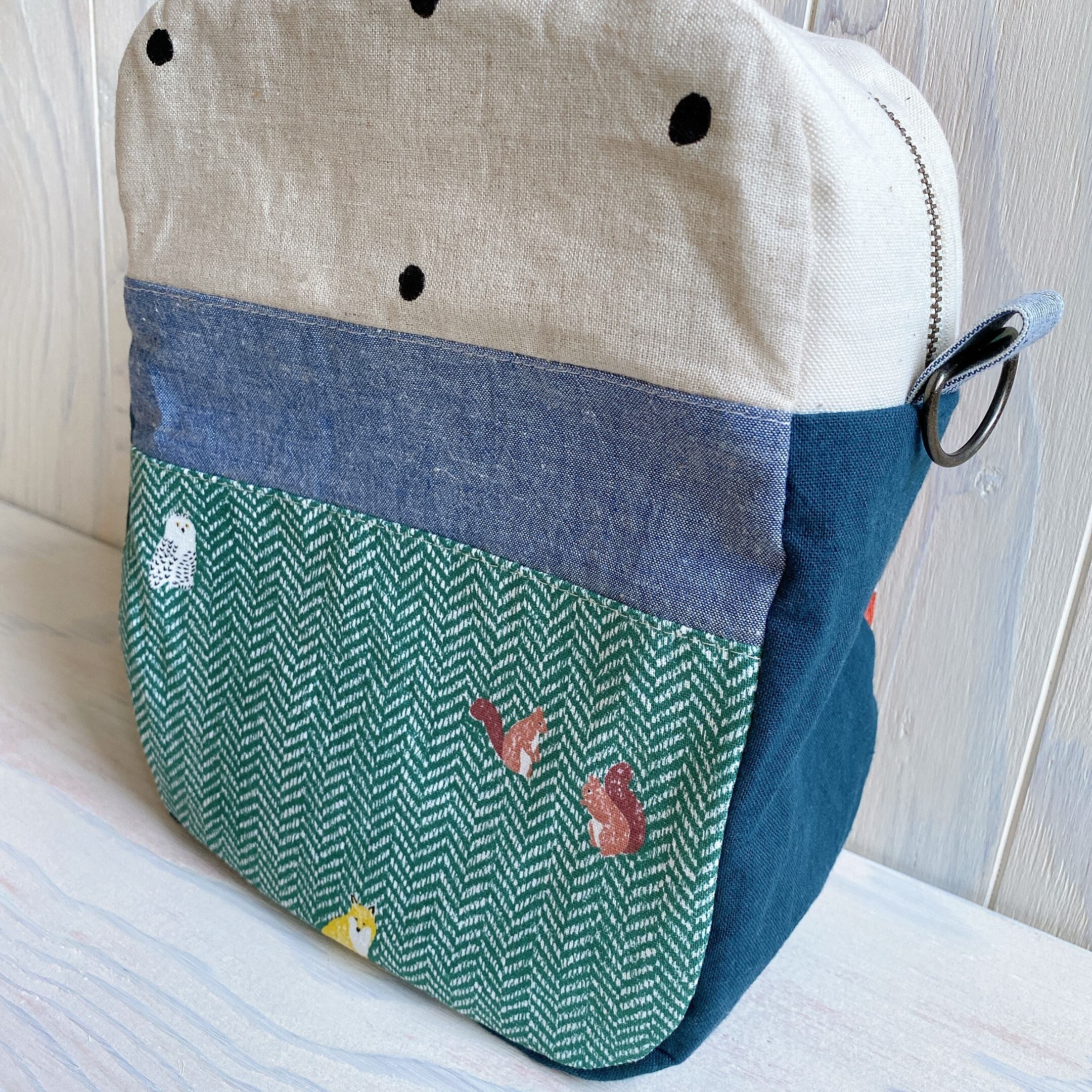 縦長な大きめポーチ(森の動物ヘリンボーン)