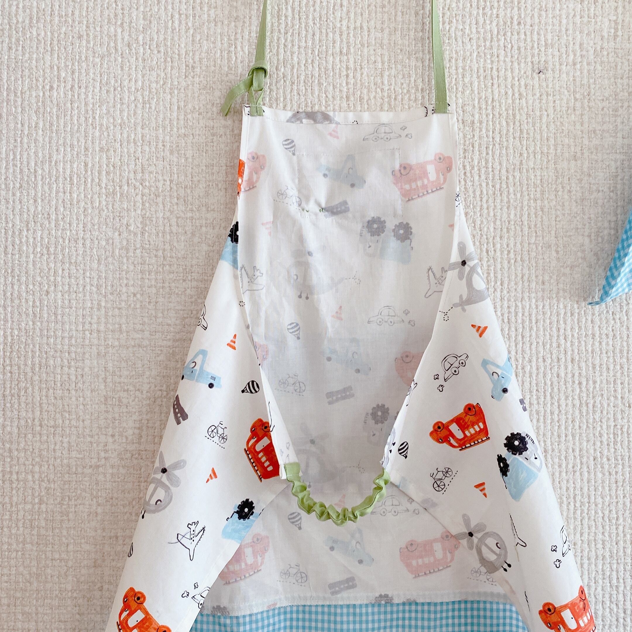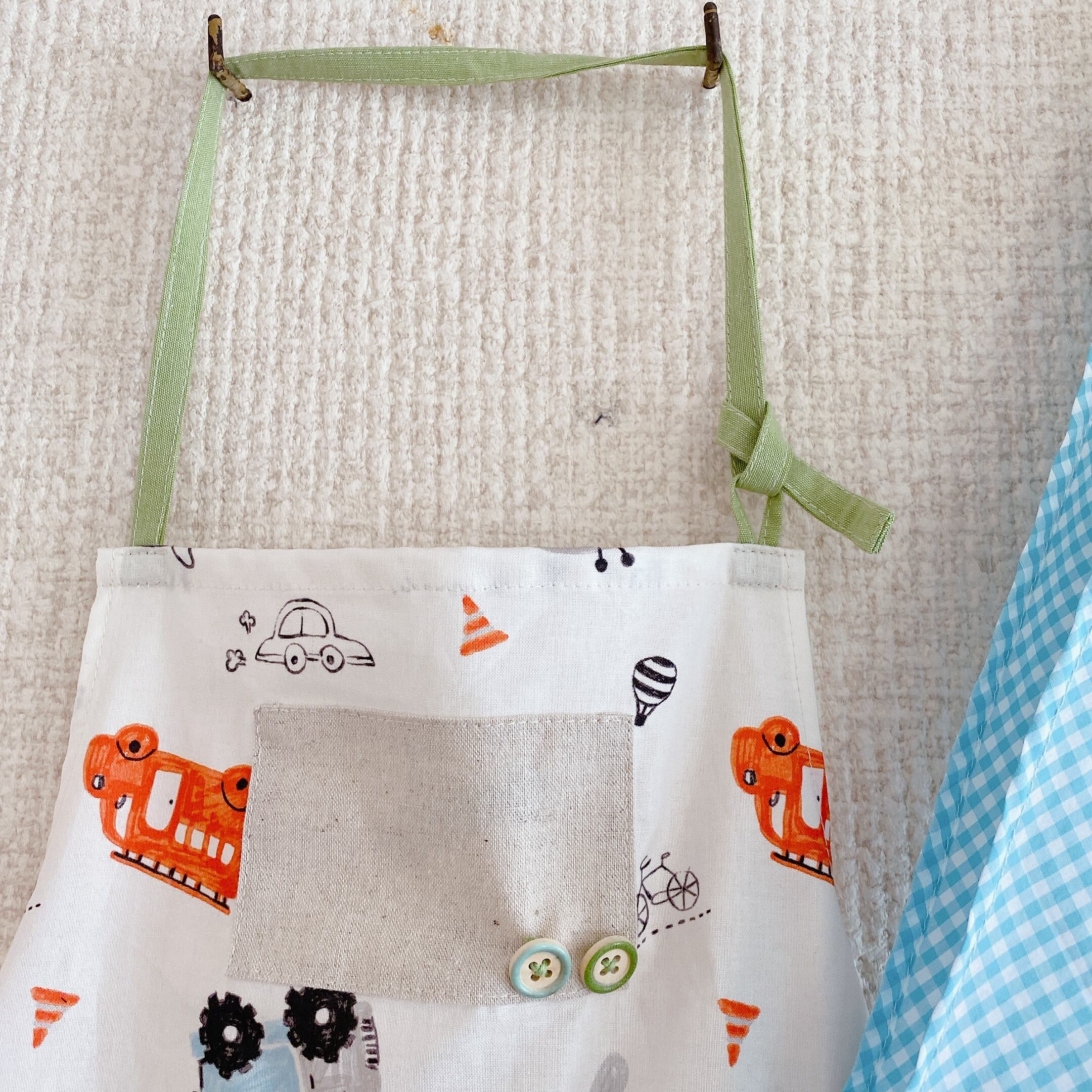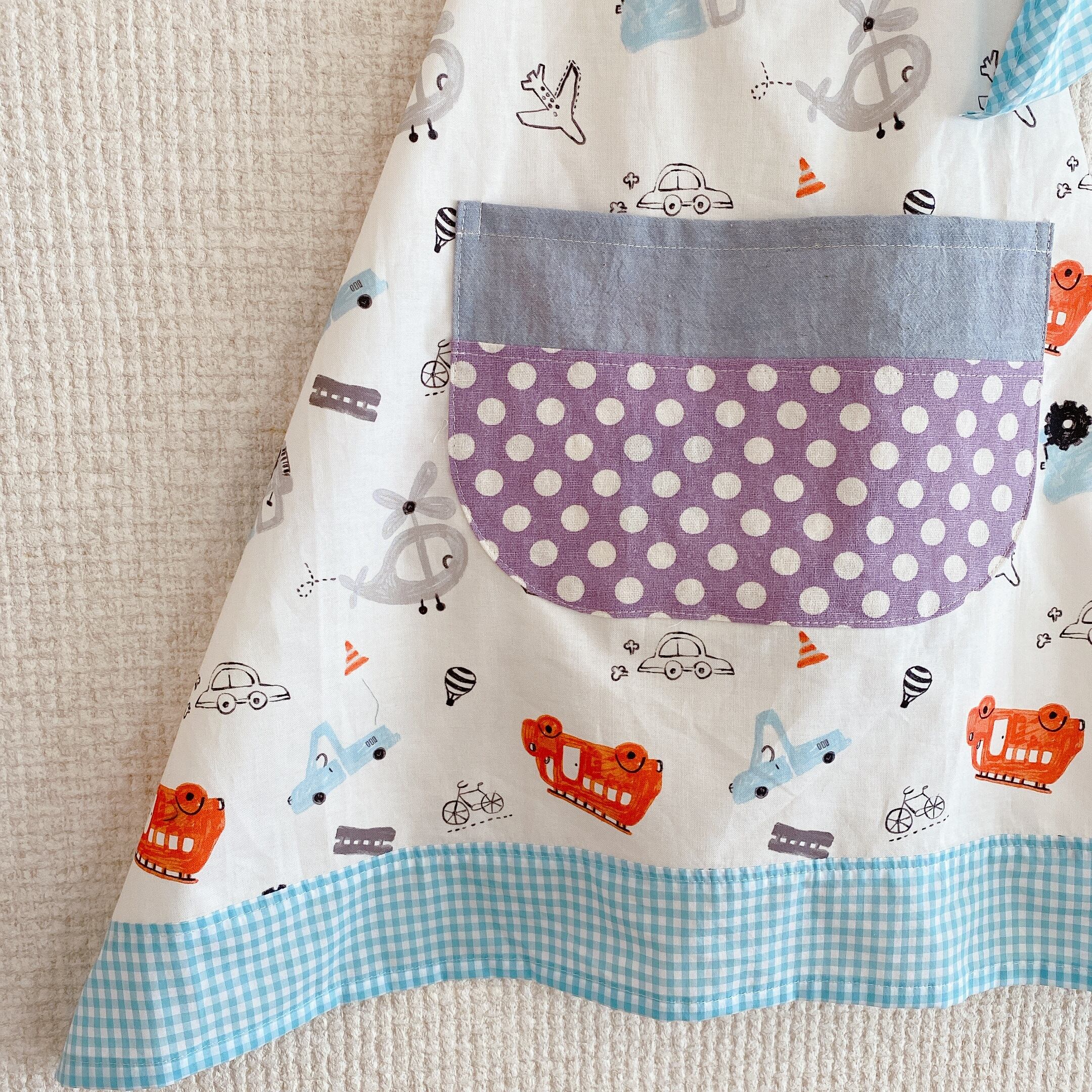 のりものの生地にギンガムやドットをくみあわせました。