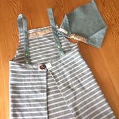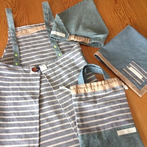 ワンポイントで、隅にエプロンの生地で四角くっつけています。