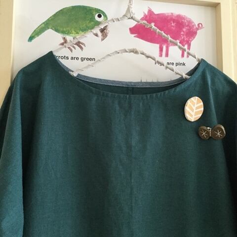ブローチや、ネックレスでアレンジするのも楽しそうなワンピースです。