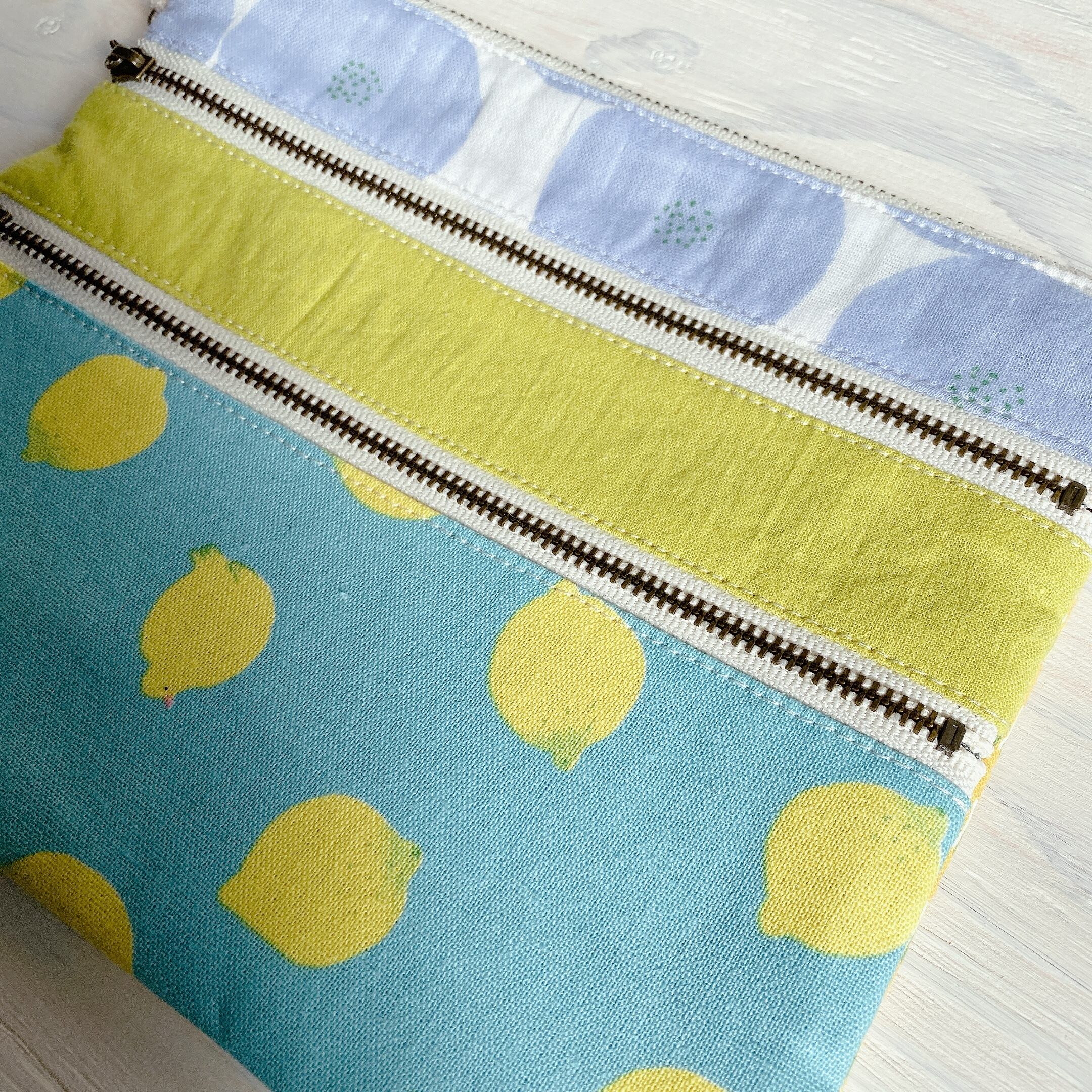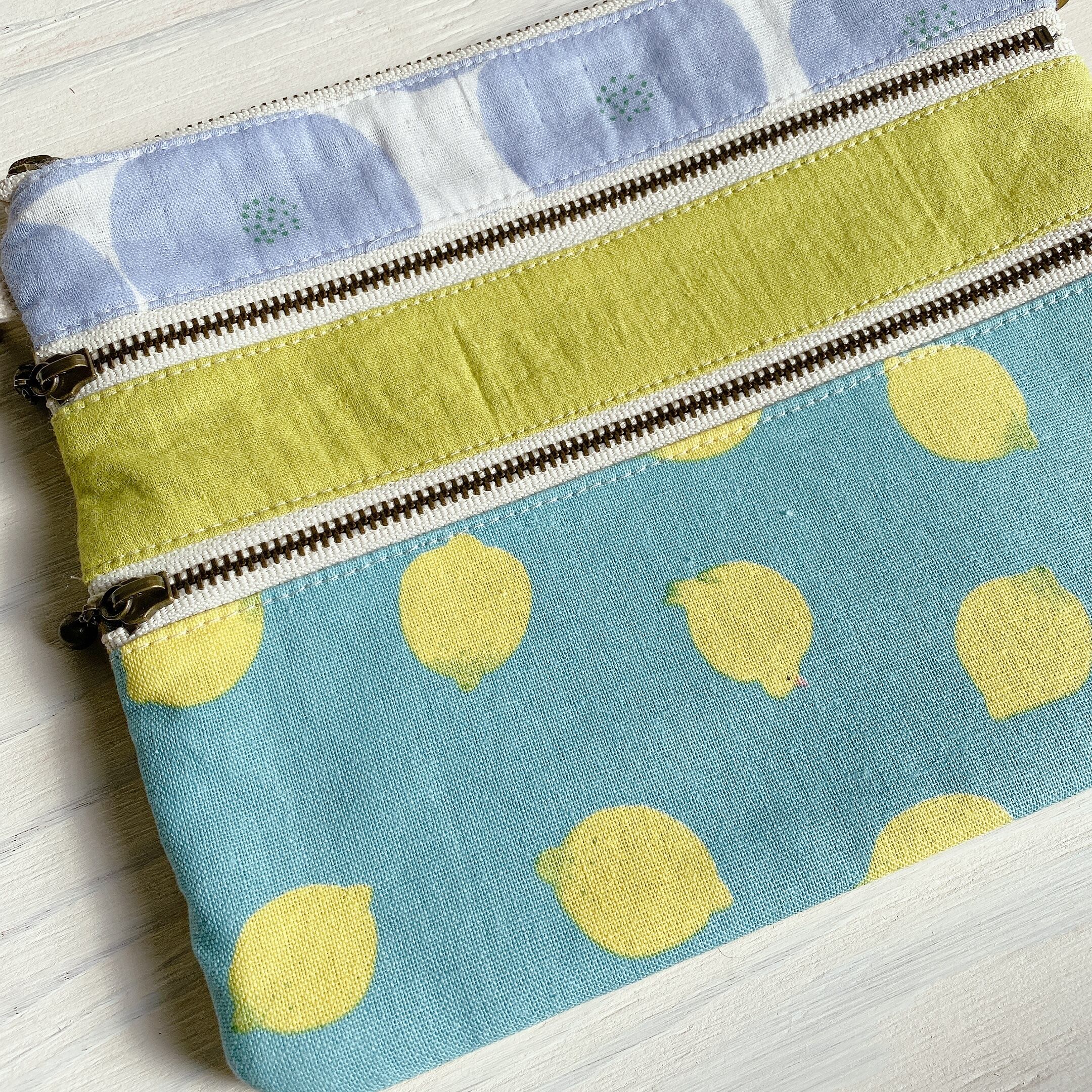 3ファスナーフラットポーチ(レモンバード)マスク入れにも♪ポシェットにも♪