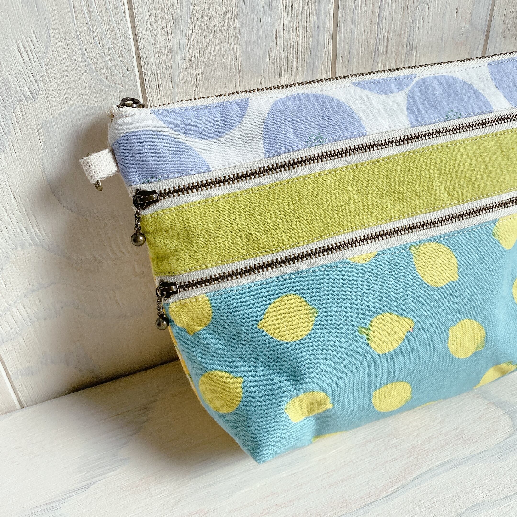 マチ付き3ファスナーポーチ*ポシェットにも♪(レモンバード)