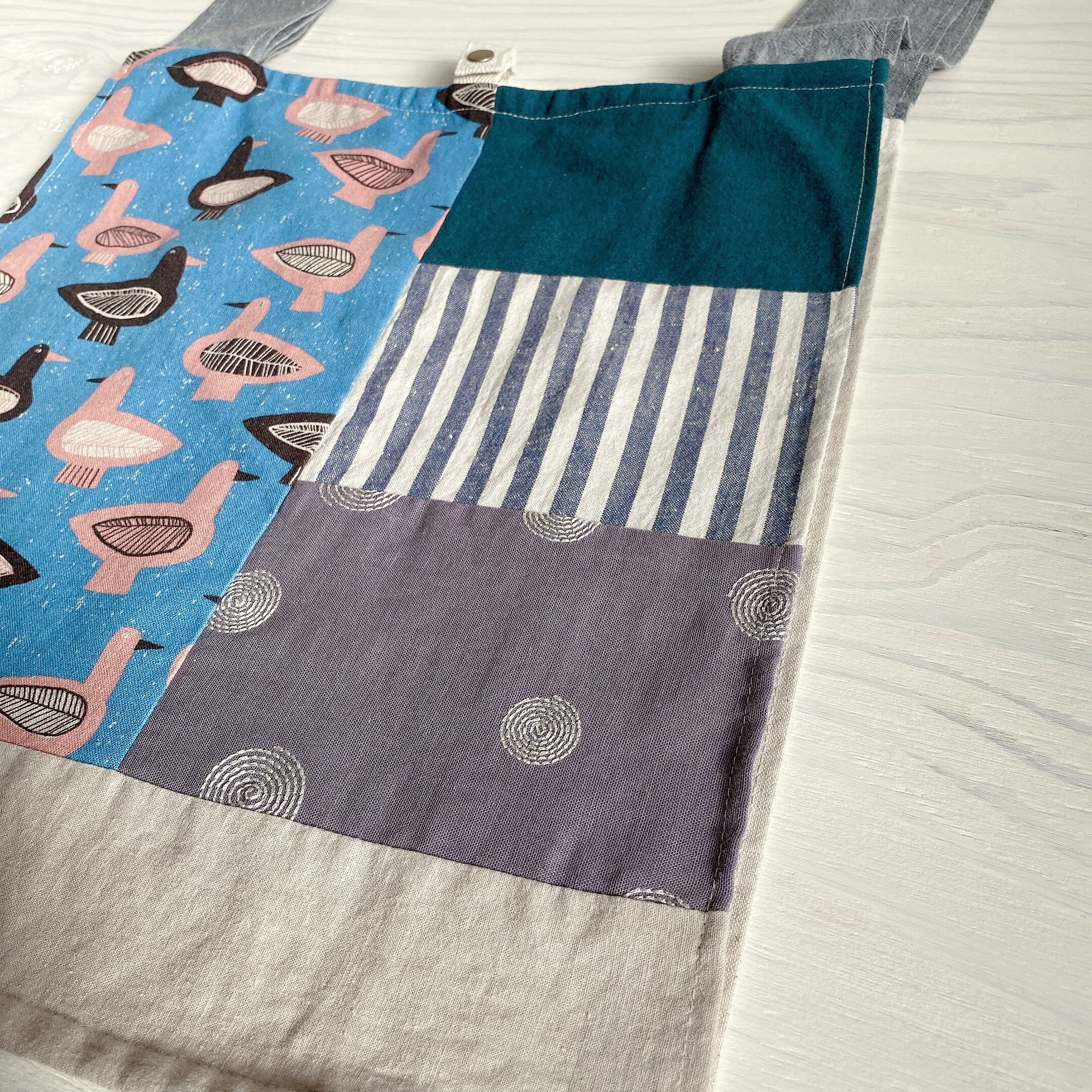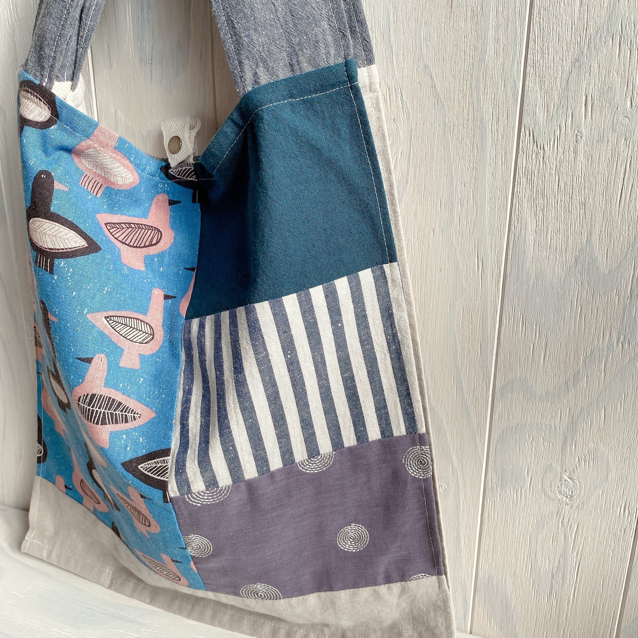 大き目サイズのつぎはぎエコバック(ピンクバード)
