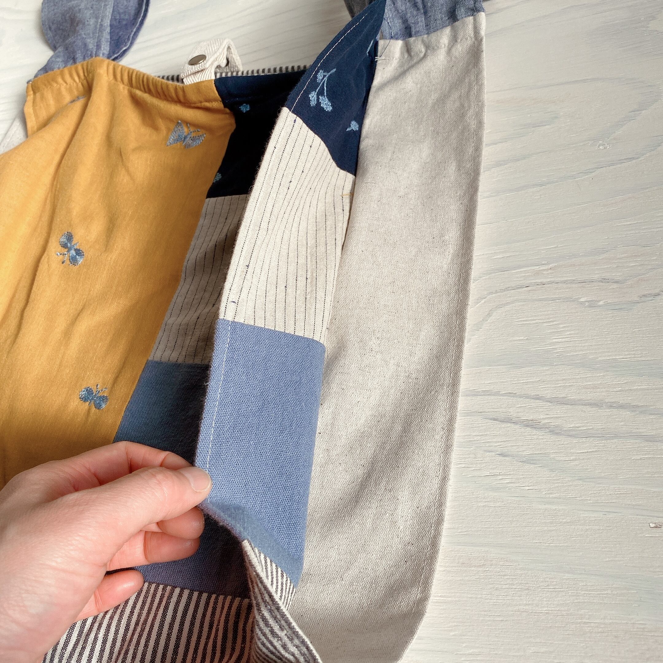大き目サイズのつぎはぎエコバック(ちょうちょ刺繍)