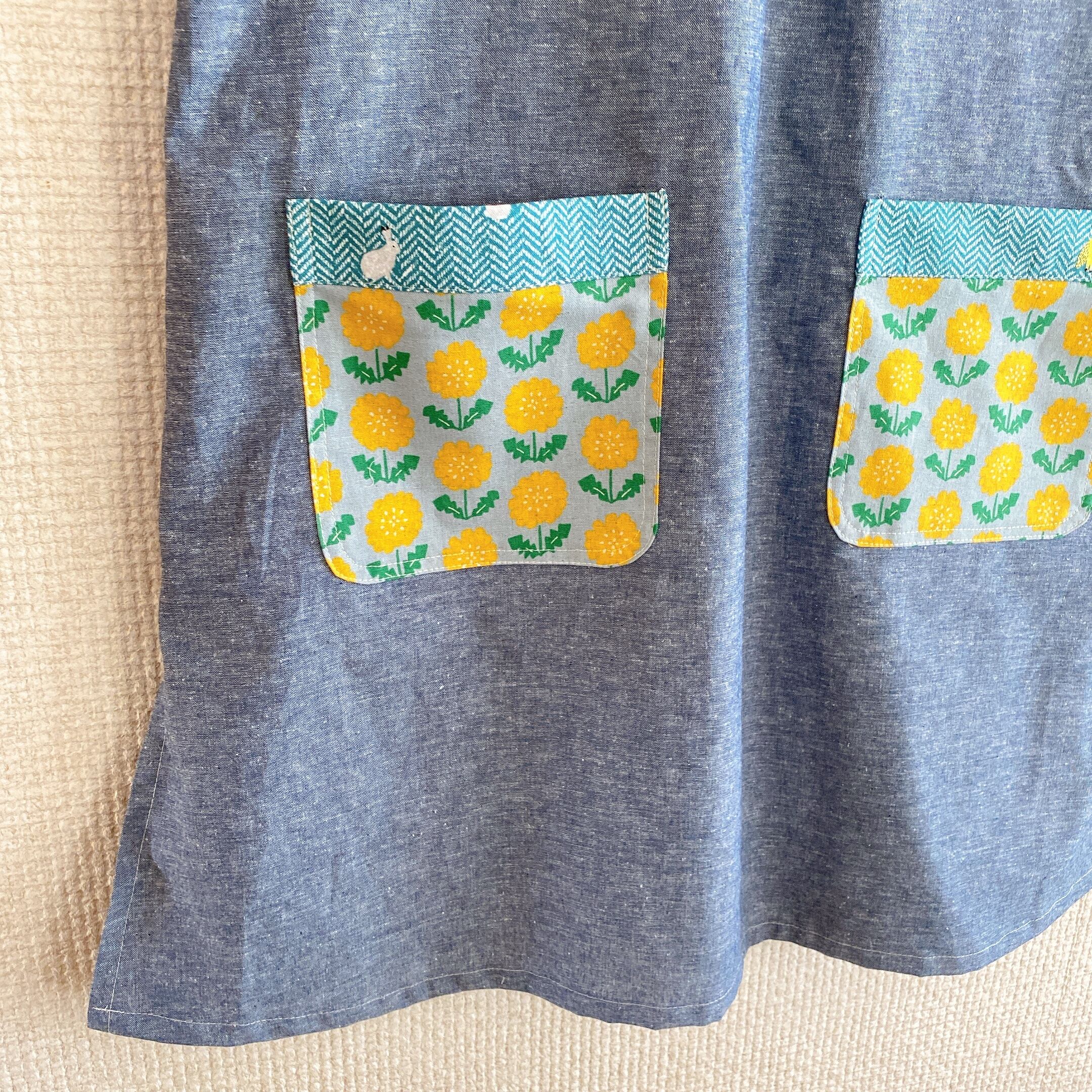 ポケット部分には明るくて元気な印象の生地を使って作りました。