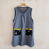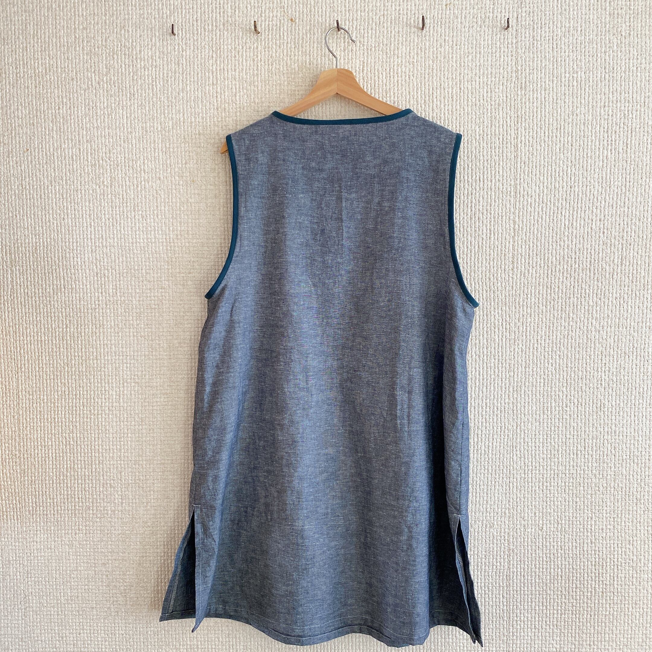かぶるタイプのエプロン、脇にはスリットが入っていて動きやすい作りにしました。