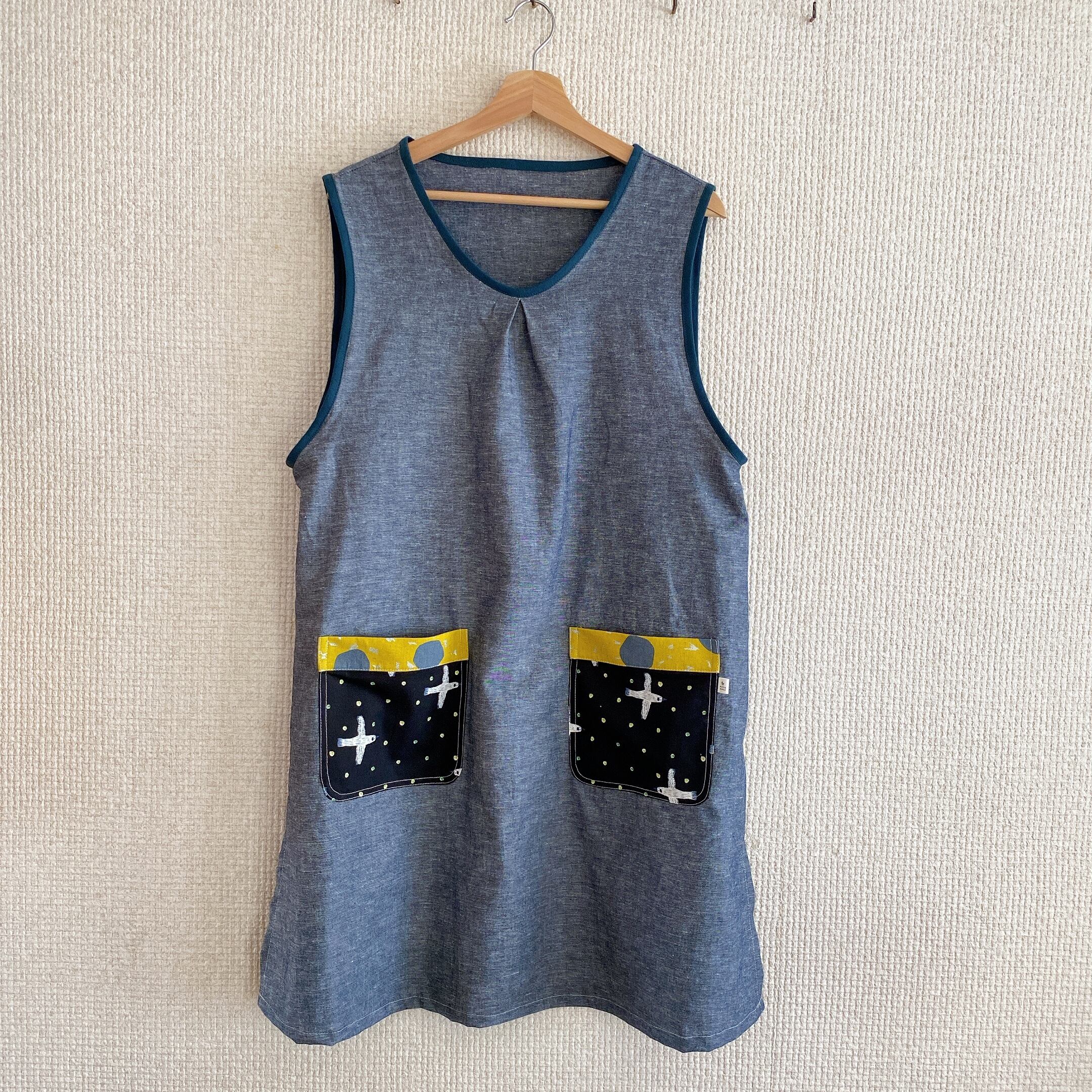 ポケット部分には明るくて元気な印象の生地を使って作りました。