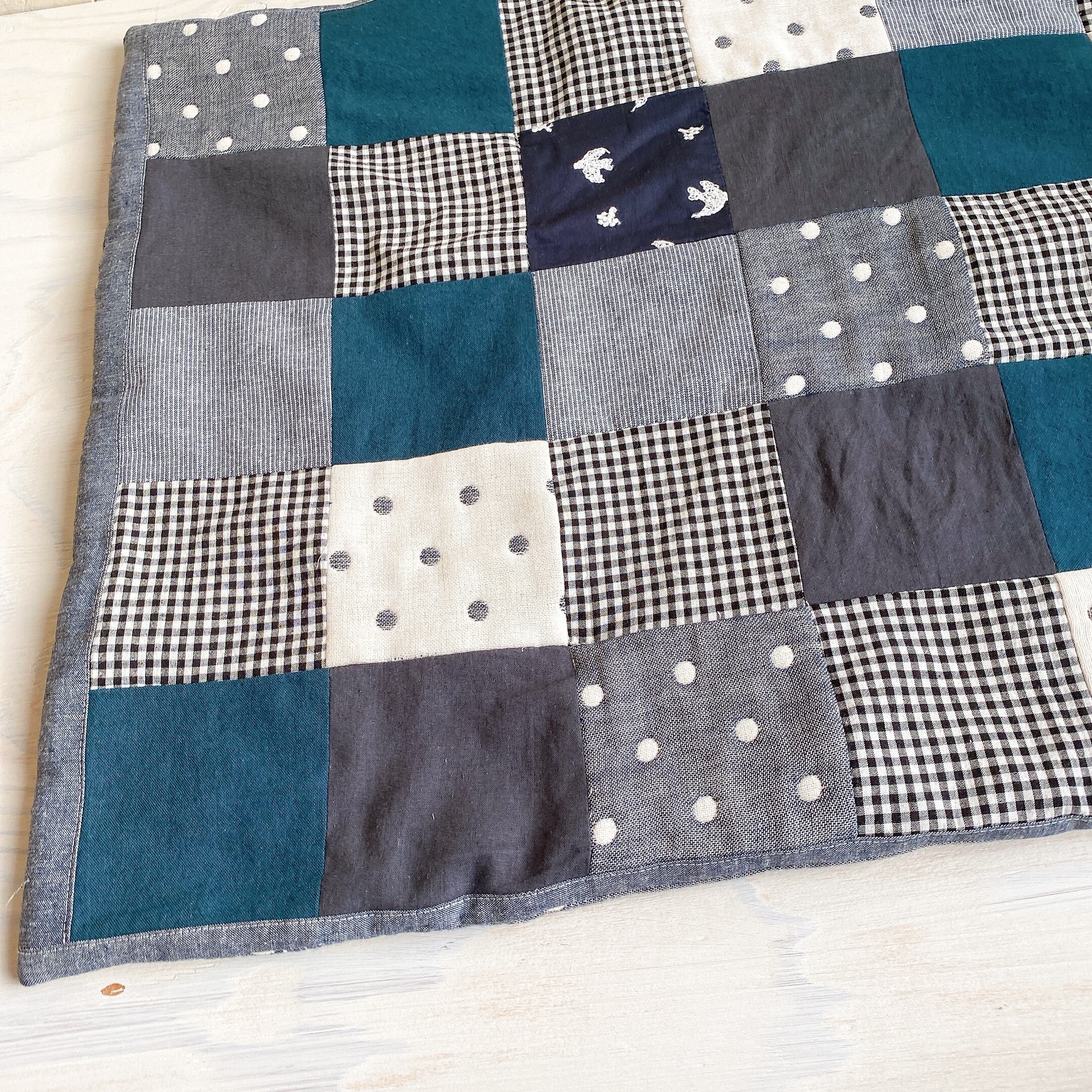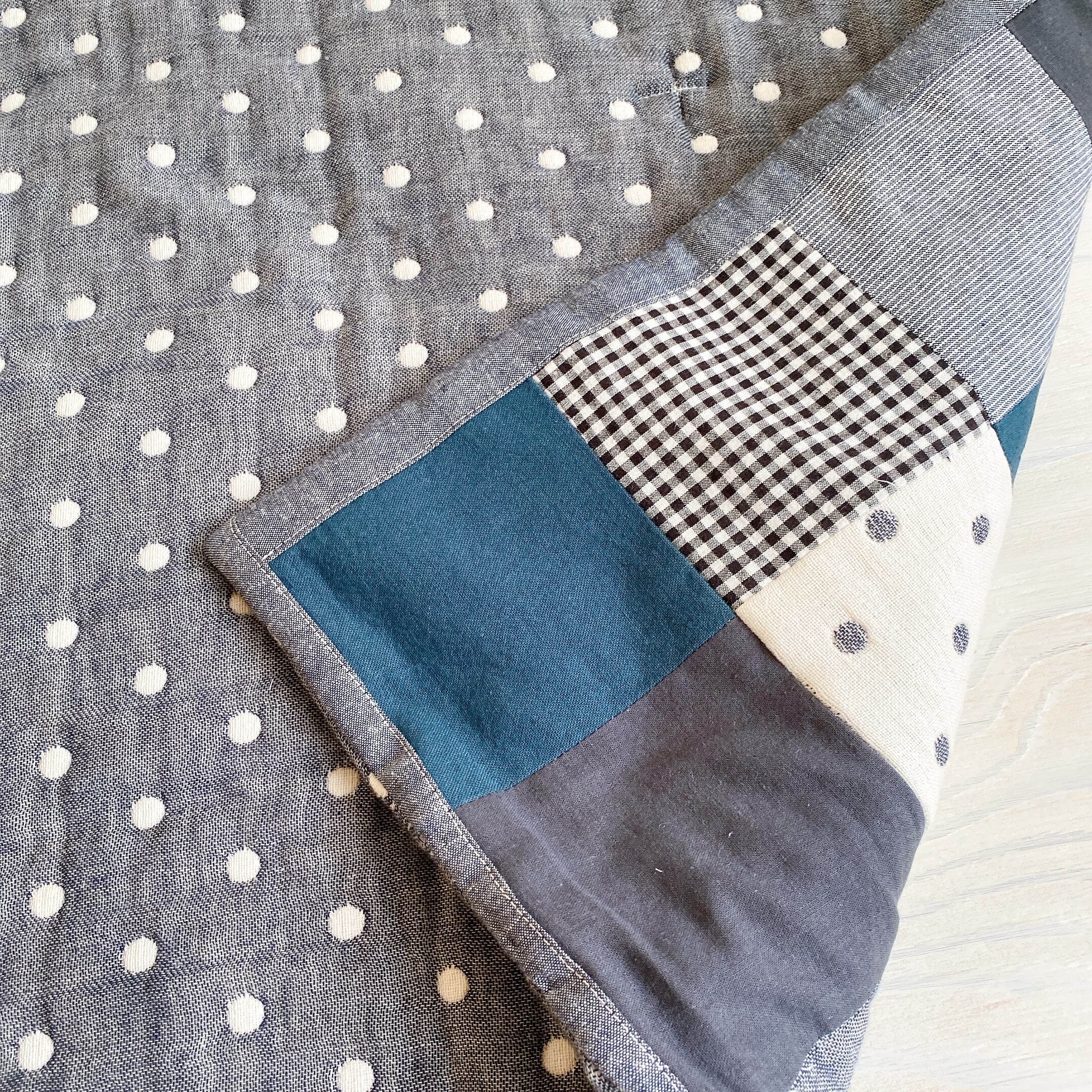 パッチワークのブランケット(ネイビードットmix)