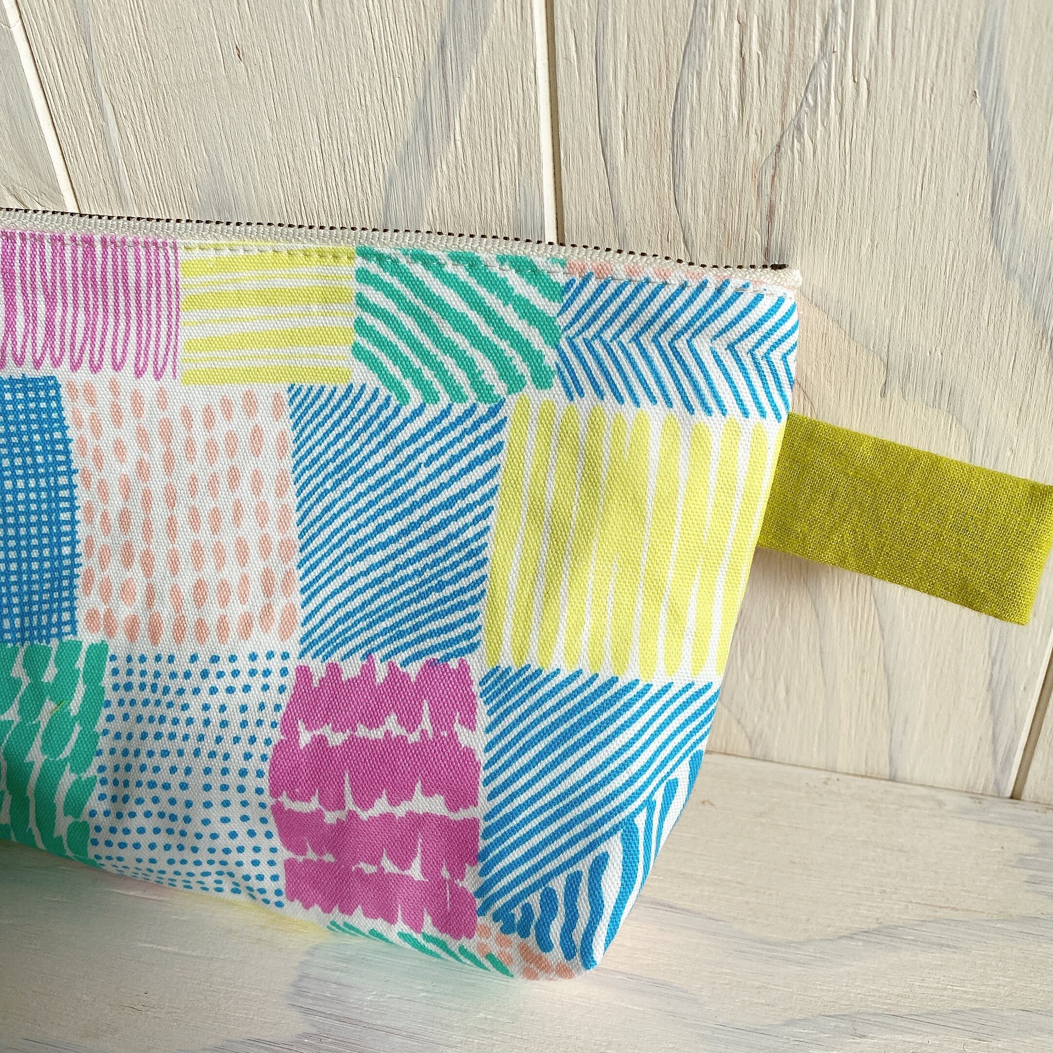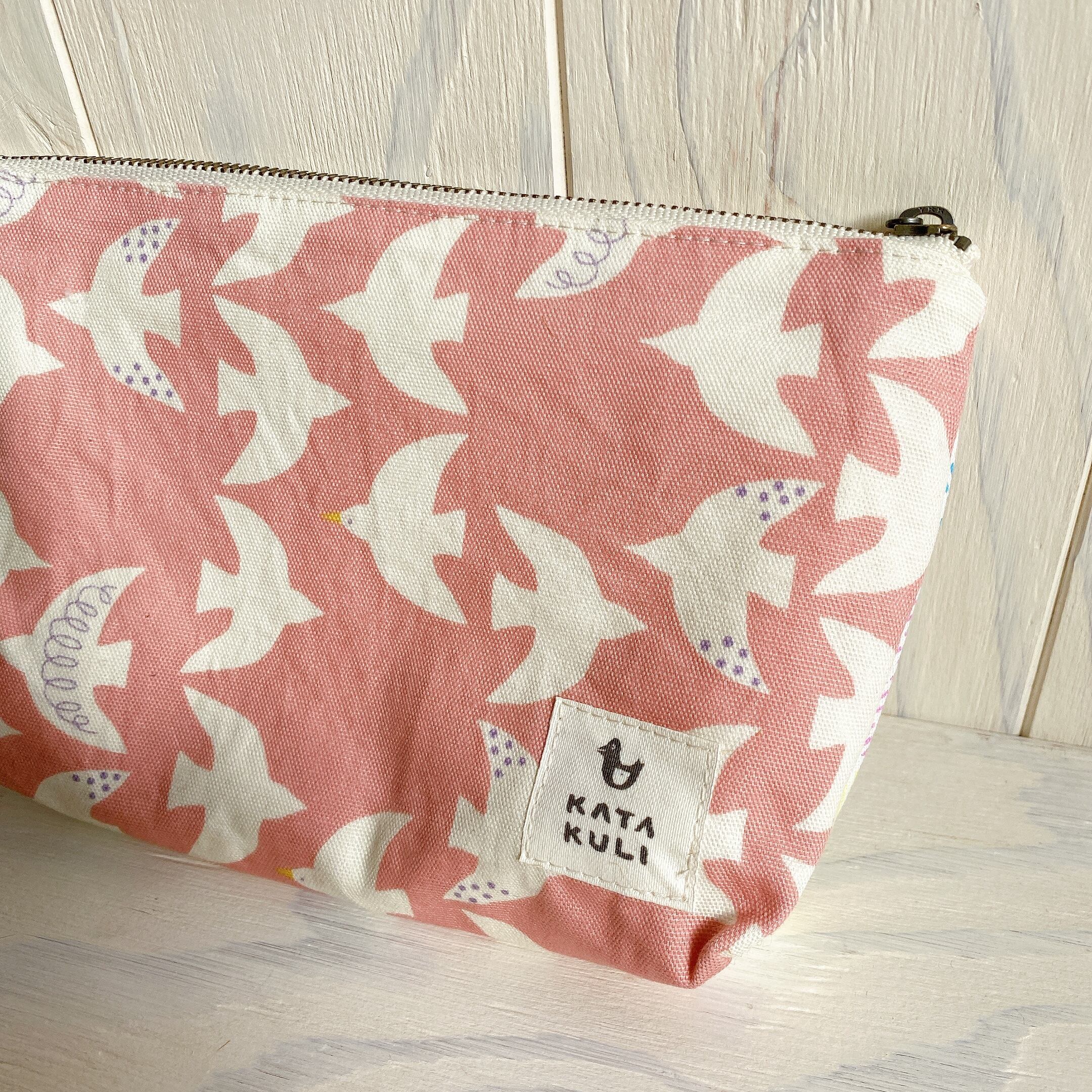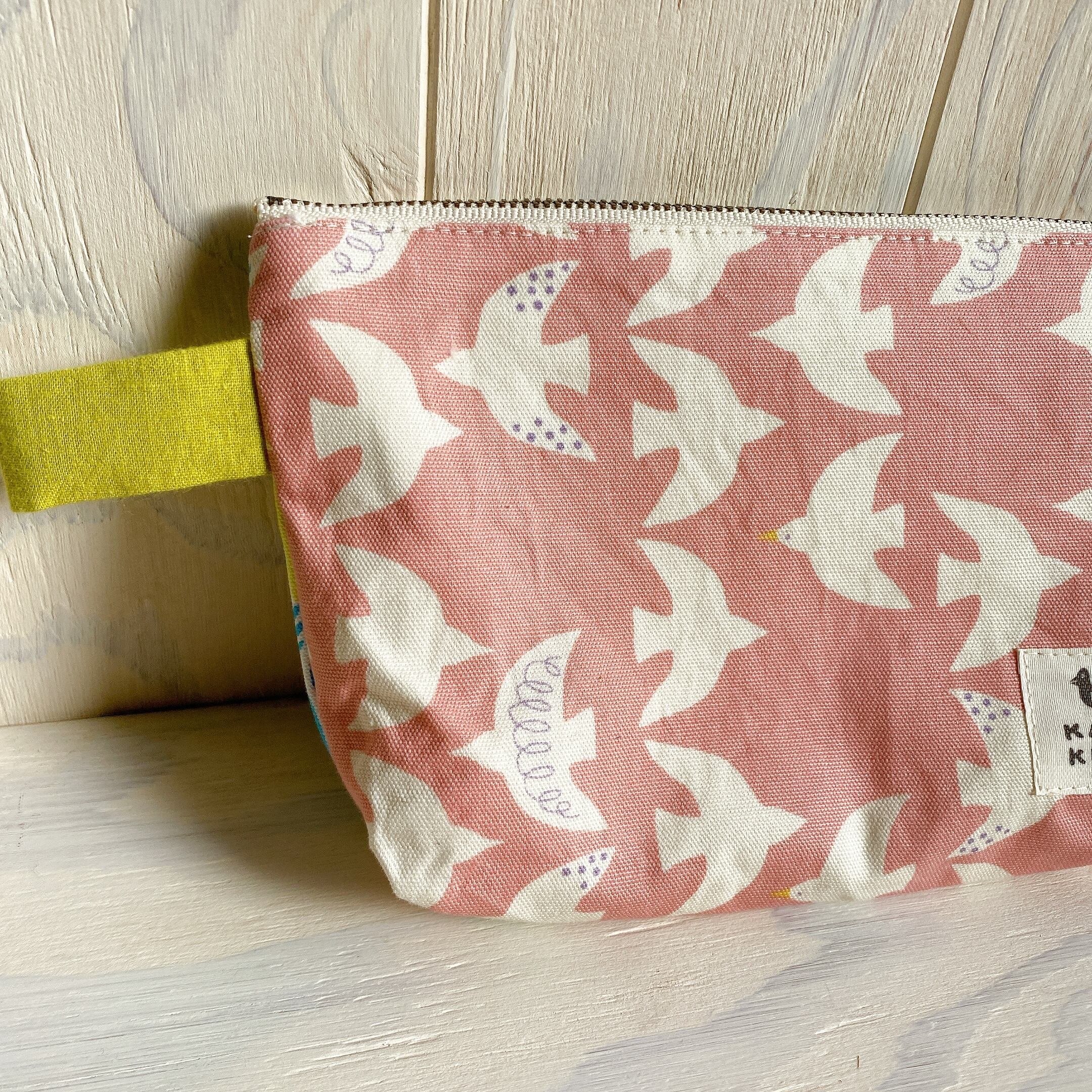 仕切りのあるポーチ(つぎはぎピンク×バード)