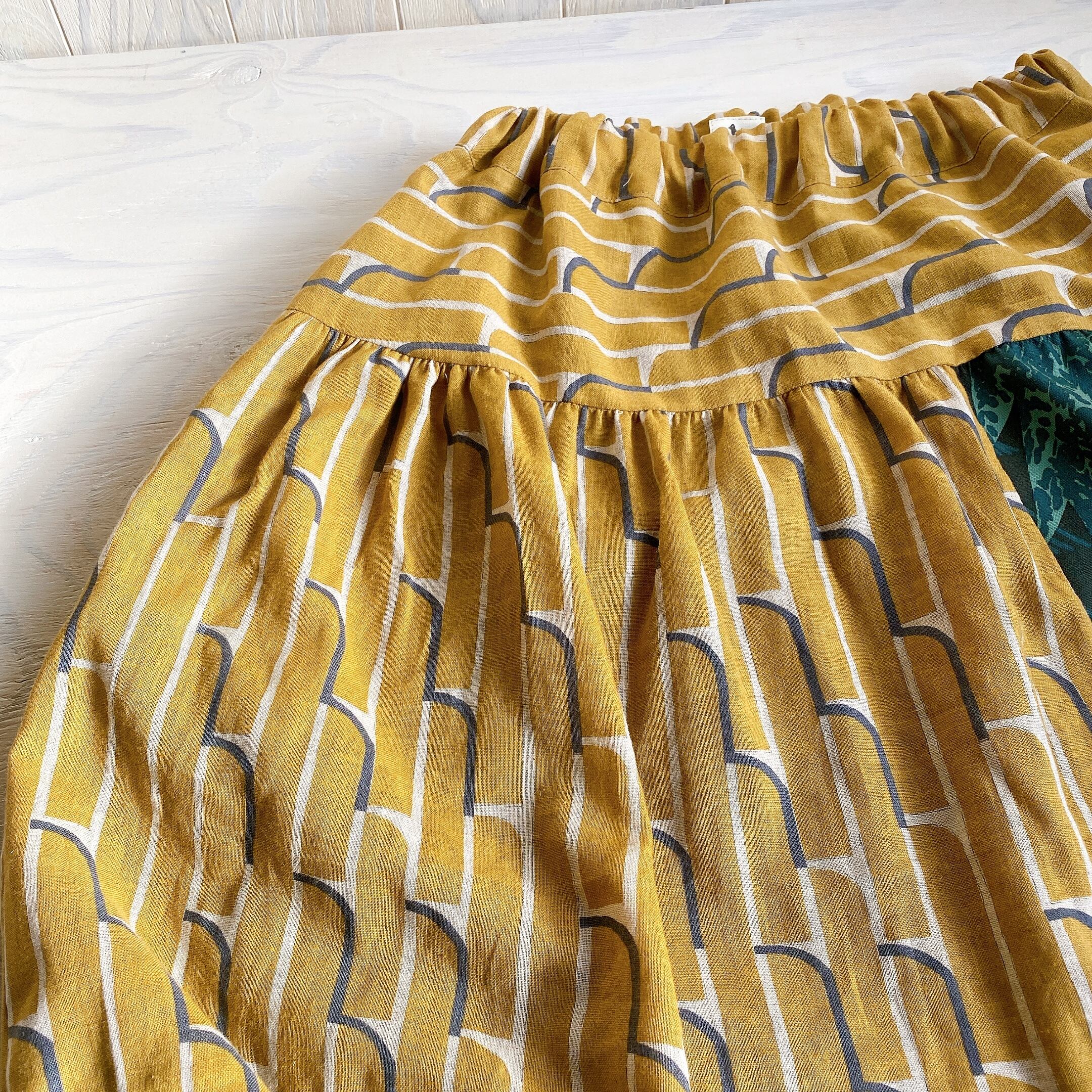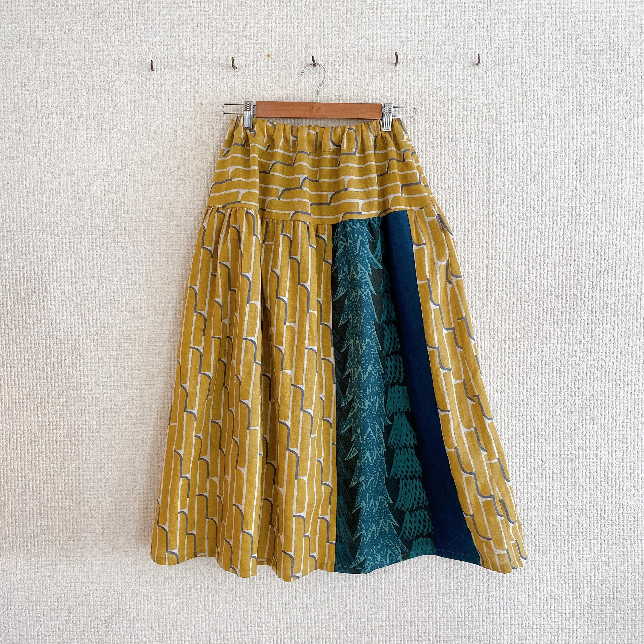 相性の良い生地たちをつなぎ合わせてスカートに仕立てました。