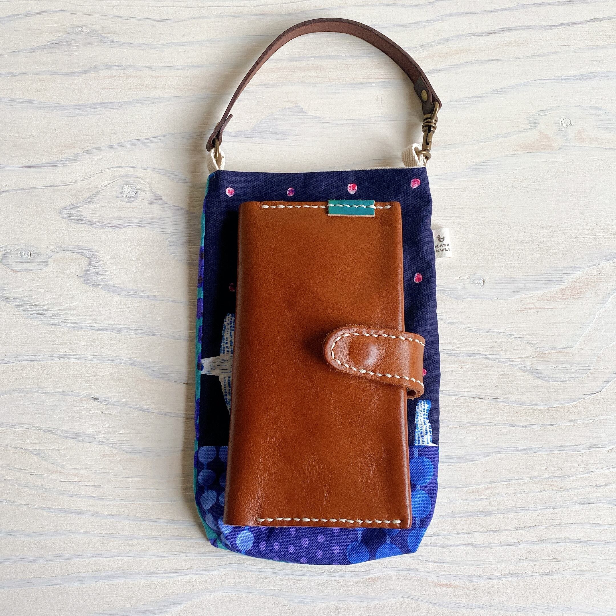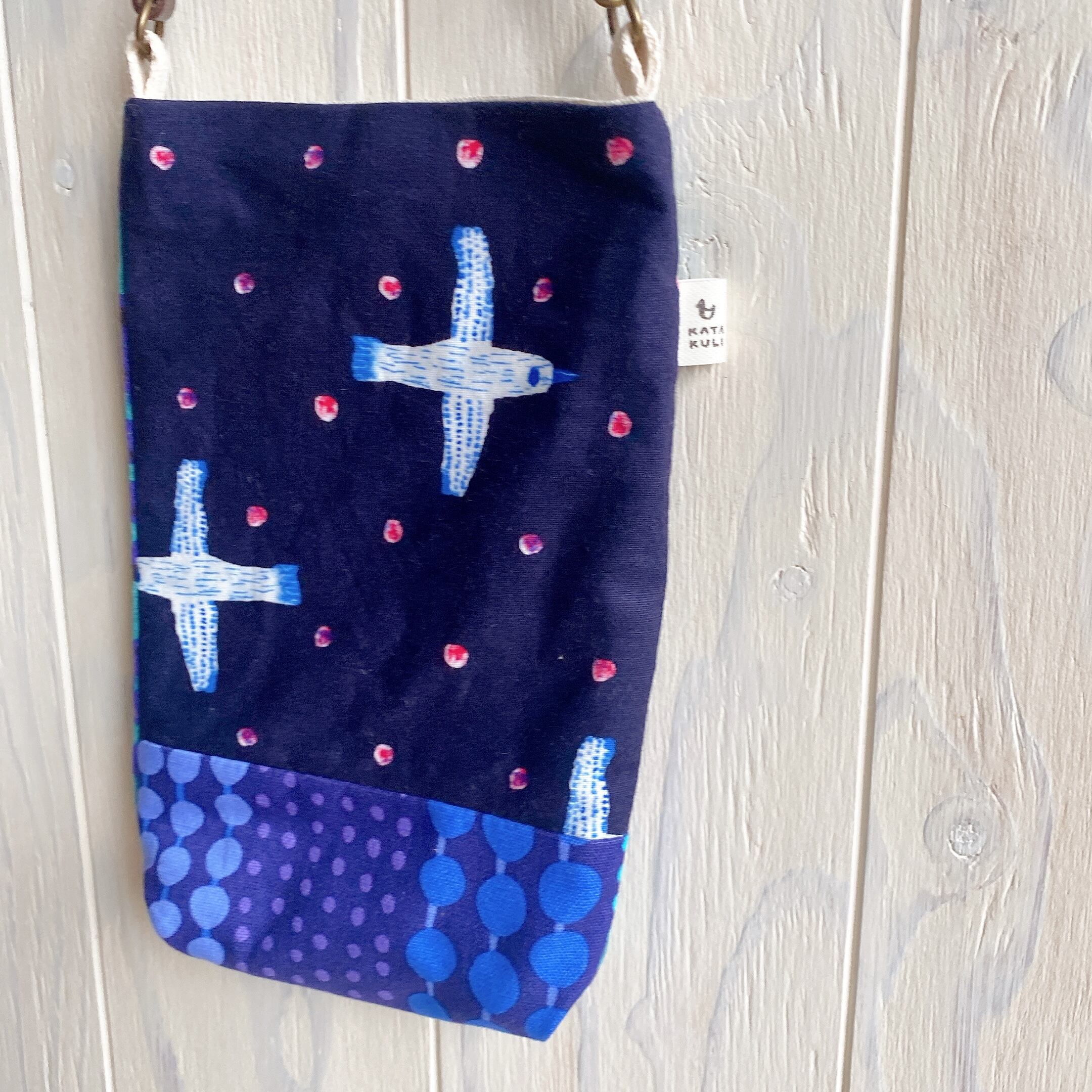 スマホポーチ(ネイビーバード×ブルーベリー)