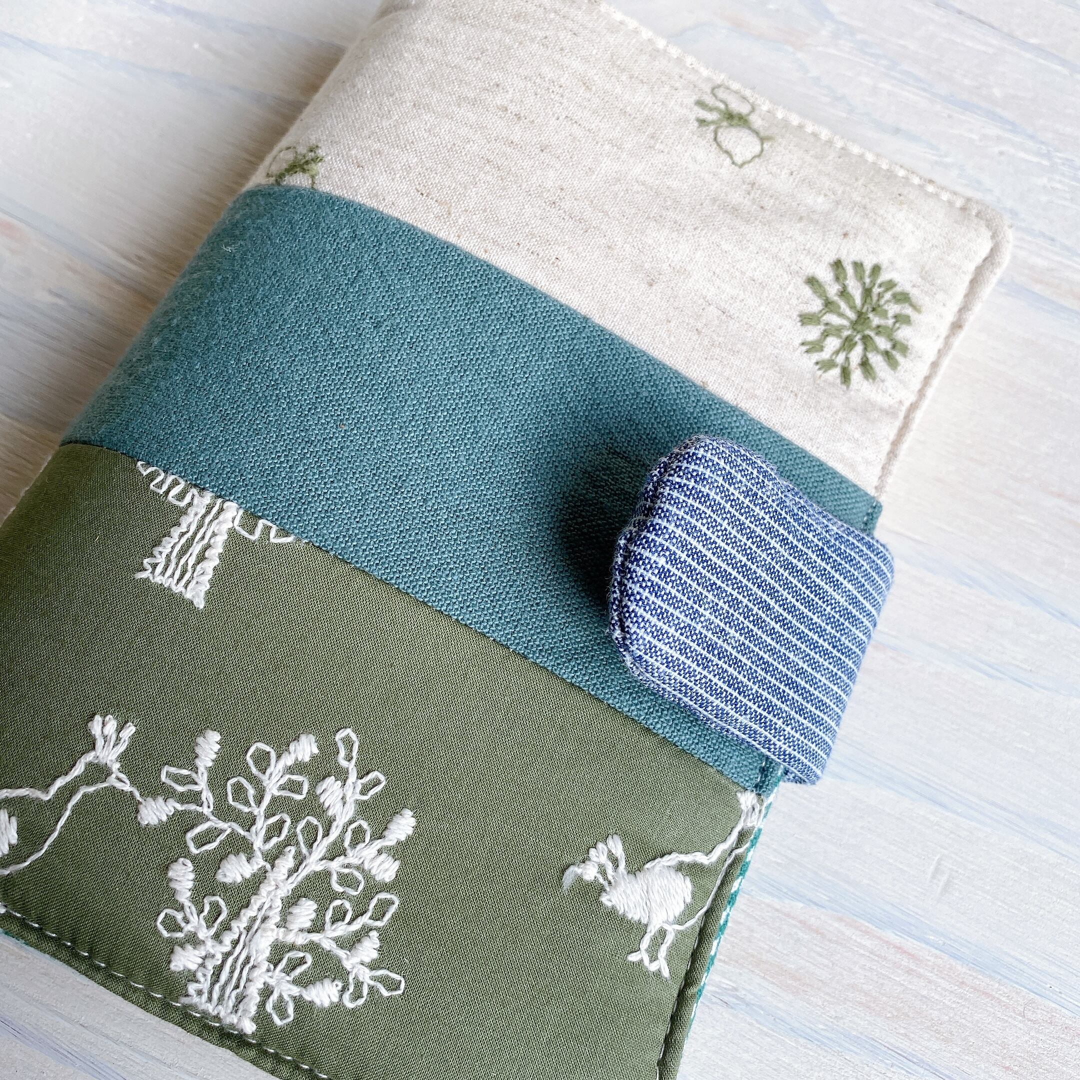 ふんわりカードケース*刺繡ちょうちょ×刺繡木と鳥