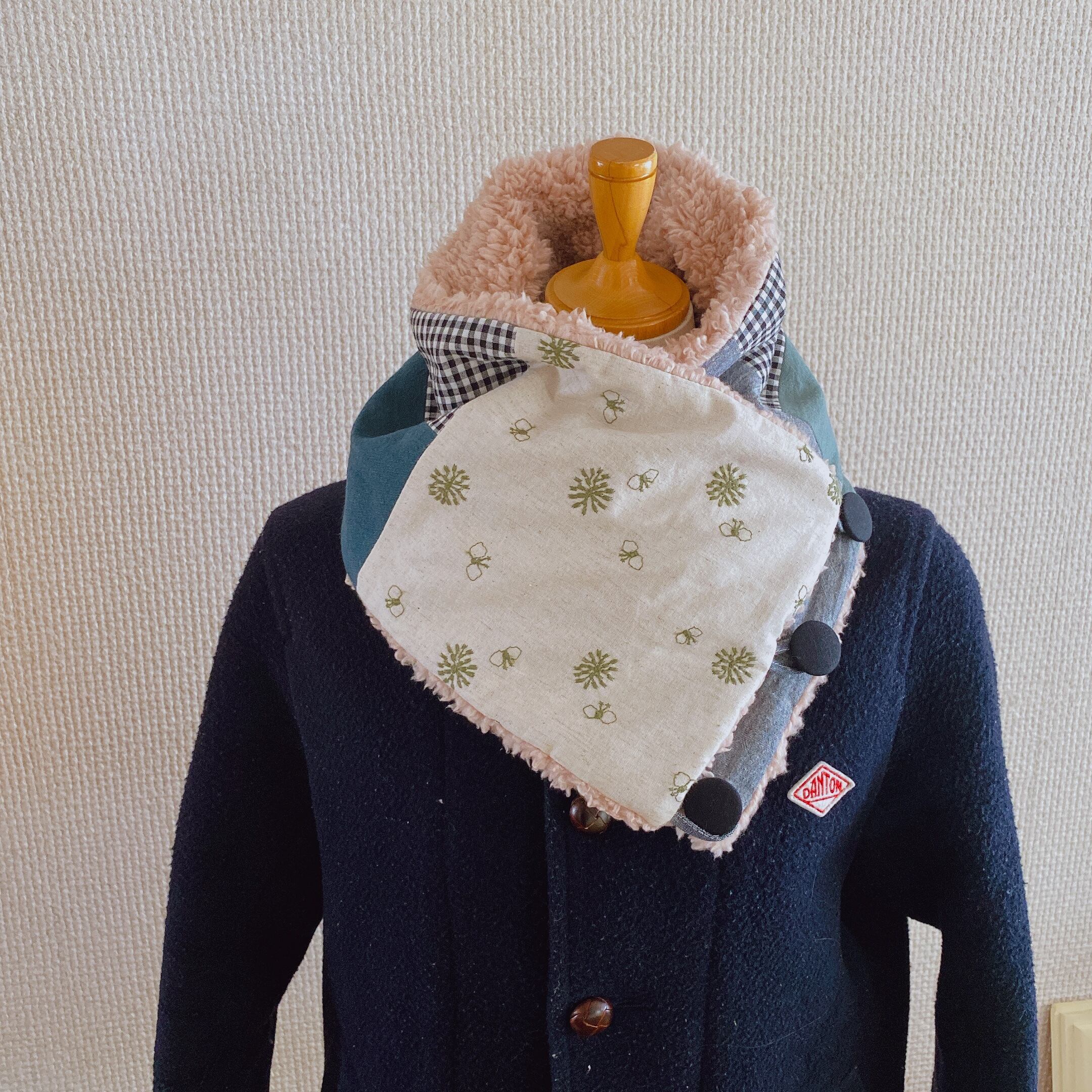 くるみボタンのあったかmixスヌード(刺繍ちょうちょ)