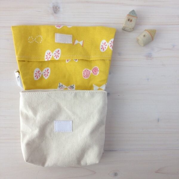 裏にはちいさいポケットを付けて絆創膏なども持ち歩けるようにしました。