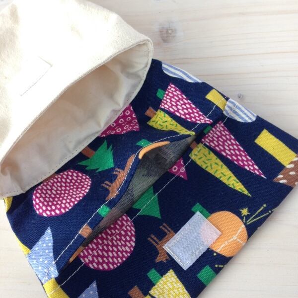 裏にはちいさいポケットを付けて絆創膏なども持ち歩けるようにしました。