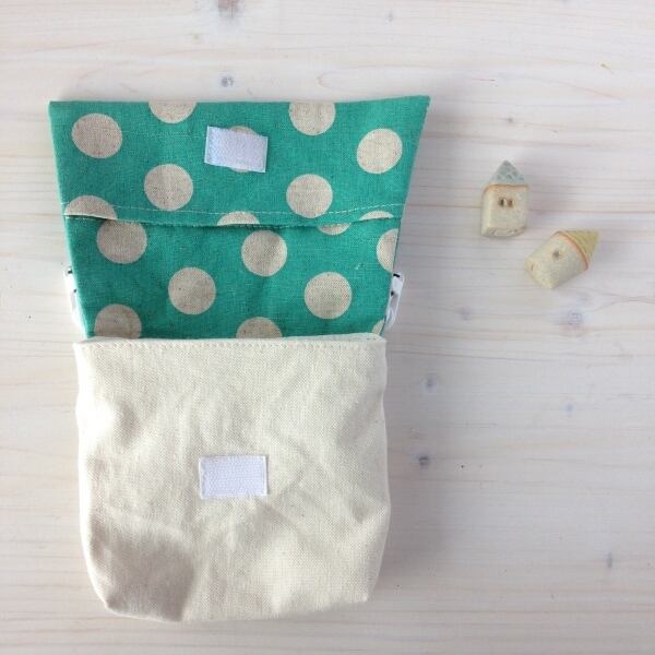 裏にはちいさいポケットを付けて絆創膏なども持ち歩けるようにしました。