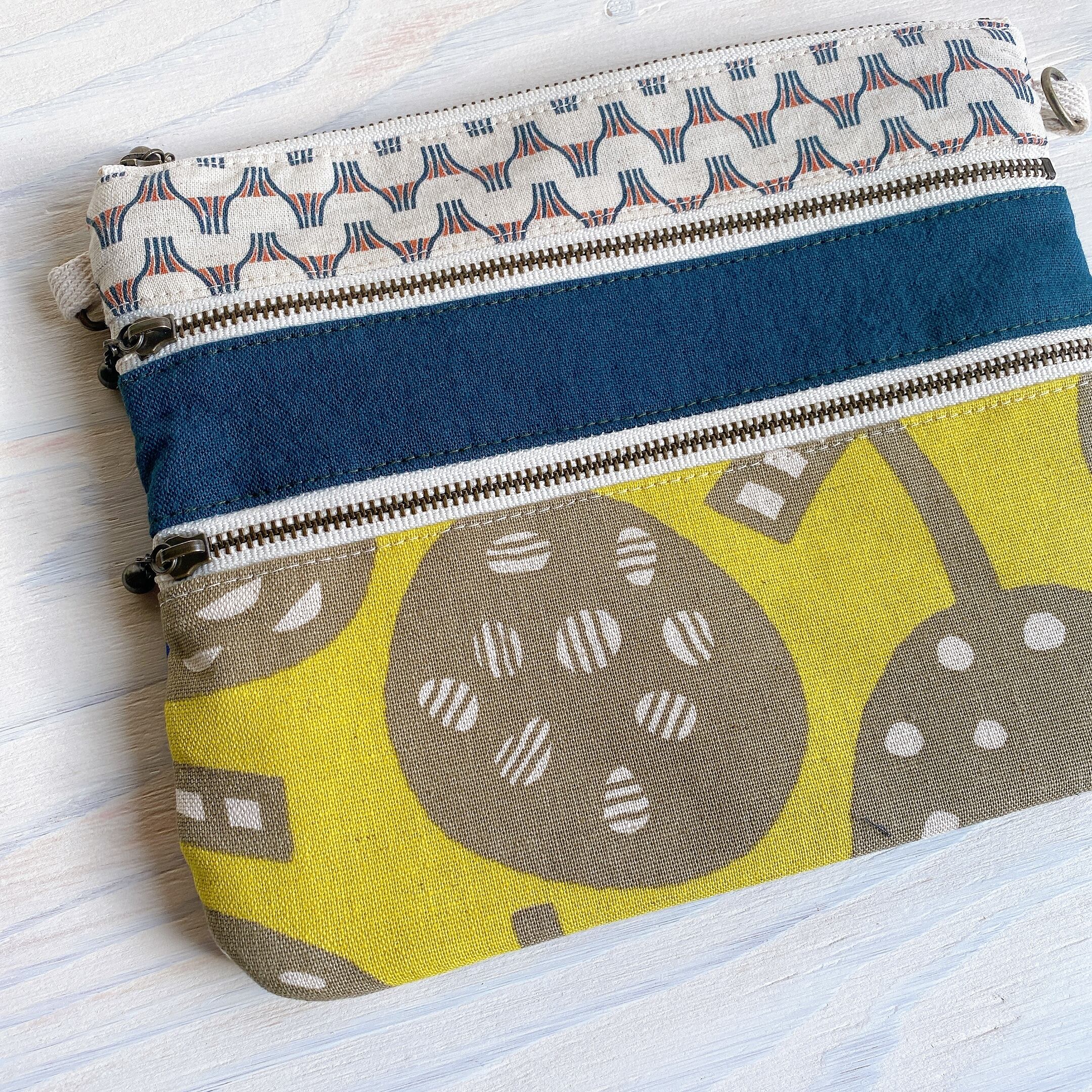 3ファスナーフラットポーチ(フルーツキイロ)マスク入れにも♪ポシェットにも♪