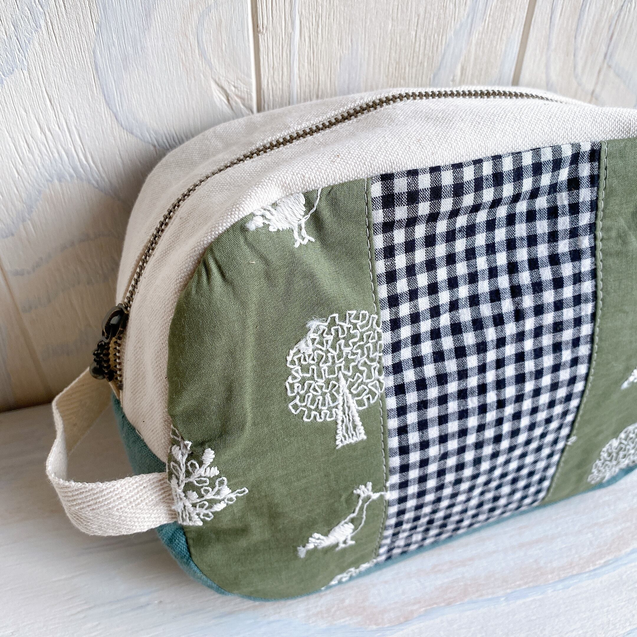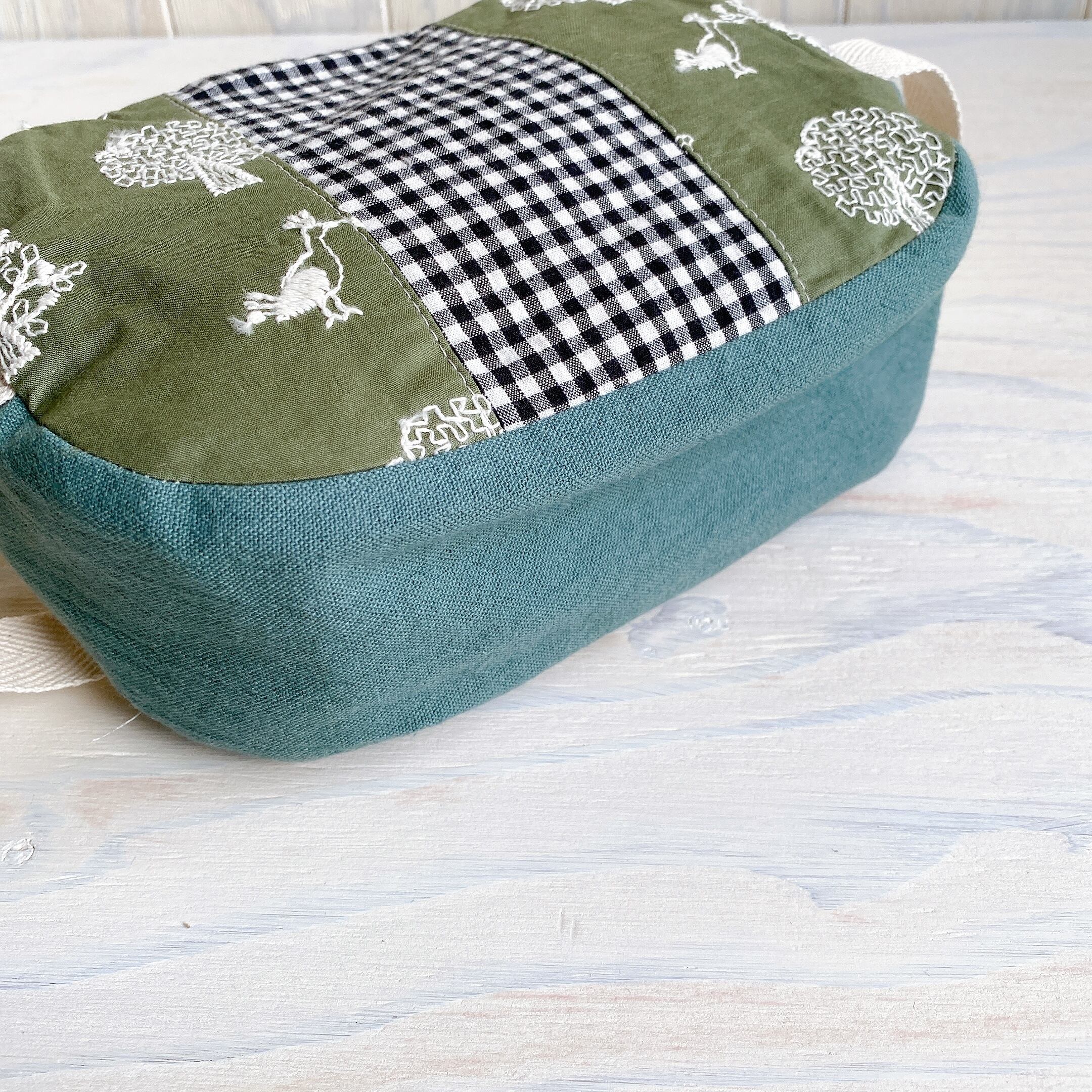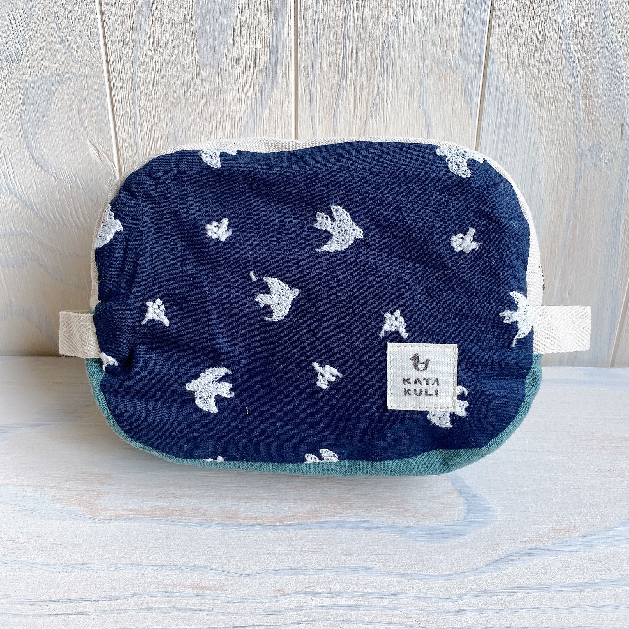内ポケット付きポーチ(刺繍木と鳥×刺繍バード)