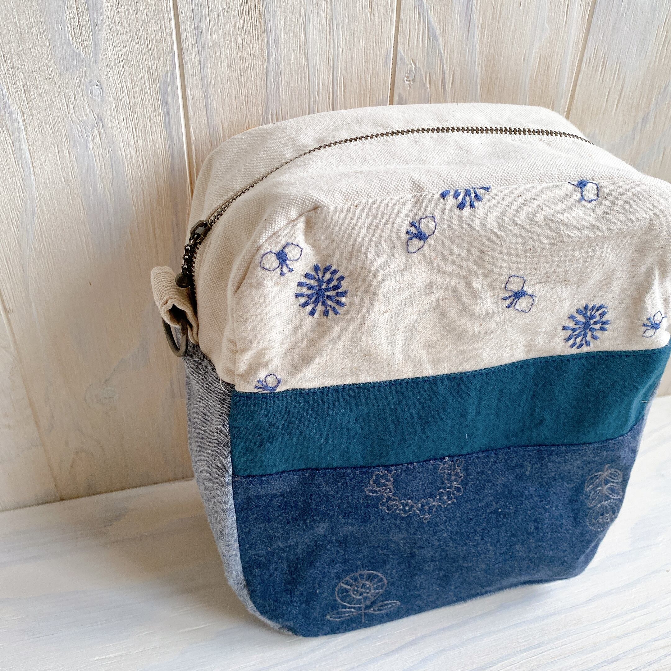 縦長な大きめポーチ(刺繍ちょうちょ)