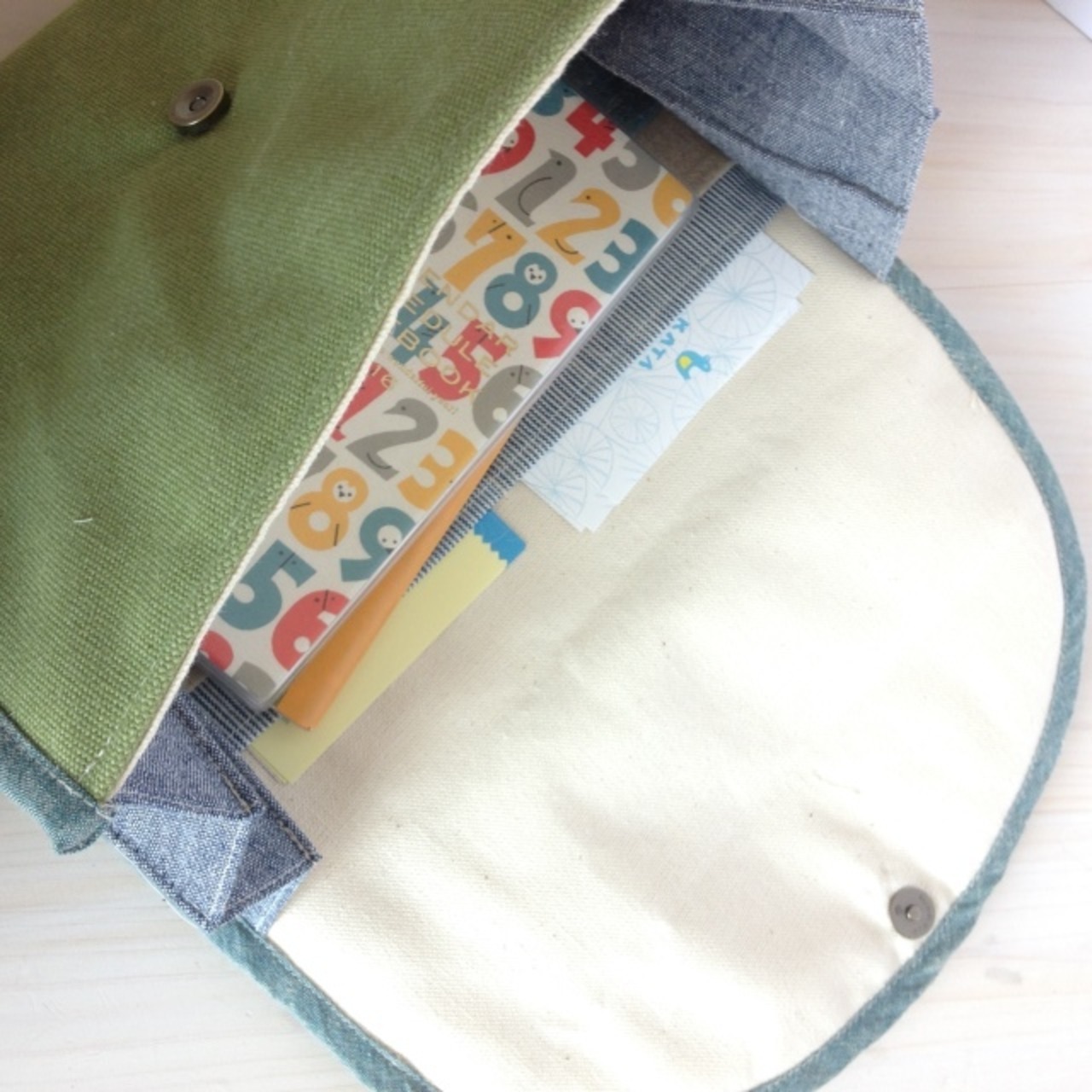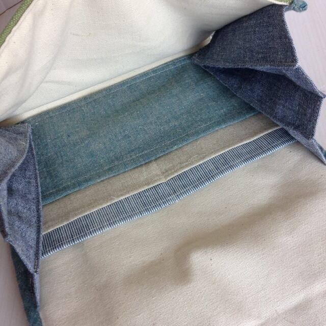 裏側には、相性の良い生地で大き目なポケットがついています。